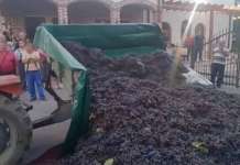 Насобраните луѓе го фрлаа грозјето пред винарницата, додека дел...