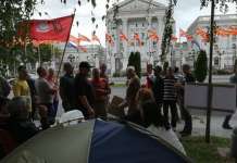 Вработени од ФЗЦ „11 Октомври“ на протест пред Владата