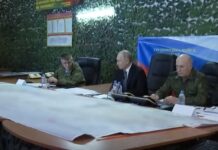 Рускиот претседател Владимир Путин присуствуваше на состанок на воената команда во украинската област Херсон, која е делумно под контрола на Русија, јавија западни медиуми...
