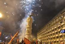 Со факели и знамиња се слави пред штабот на ВМРО-ДПМНЕ