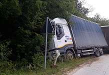 Српски државјанин, кој возел влекач „Сканија“ со полуприколка, вчера попладне излетал од патот Градско-Прилеп и паднал во провалија.
