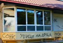„СОНК убијци на деца“ – со грозоморни натписи вандализирана градинка во Ѓорче Петров