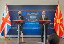 Министерот за надворешни работи, Бујар Османи, заедно со министерката за Европа и Америка на Обединетото Кралство, Венди Мортон, денеска...