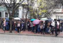 Со самоиницијативно собирање и мирен протест пред зградата на локалната самоуправа во Тетово помали групи ученици од деветтите одделенија од основните училишта Лирија, Братство...
