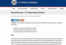 Амбасадата на САД во Република Македонија на својата веб страница објави соопштение во кое им порачува на американските државјани да ги избегнуваат местата каде...