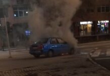 Автомобил гори на булеварот Кочо Рацин во Скопје, наспроти Црвен крст.