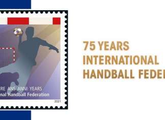 Марката има црвено-бела рамка, а со сино-златната боја на теренот и рака што држи топка се оддава почит на официјалните бои на ИХФ