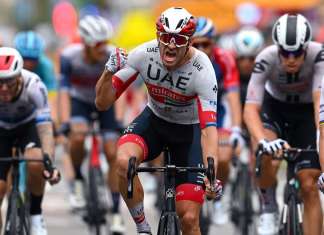 По дождливо време тој победи во првата етапа за време на која имаше повеќе падови. Тоа за него е вкупно четврта етапна победа на...