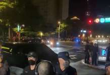 Пред хотелот каде е сместена претседателката на Претставничкиот дом на Конгресот на САД, Ненси Пелоси, се одржува протест на прокинеска група која се противи...
