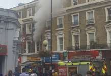 Голем пожар избувна вечерва во една четирикатна зграда во реонот на Бејсвотер во Лондон, соопшти лондонската противпожарна служба.