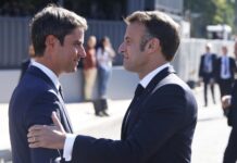 Вознемирениот изглед на лицето на Габриел Атал кога францускиот претседател Емануел...