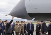 Севернокорејскиот лидер Ким Јонг-ун во рамки на неговата посета на Русија, ги разгледа руските бомбардери кои можат да носат нуклеарно оружје и воен брод...