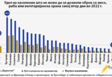 Во 2022 година, 8,3 отсто од населението на Европската Унија (ЕУ) не можеа да си дозволат оброк што содржи месо, риба или еквивалент на...