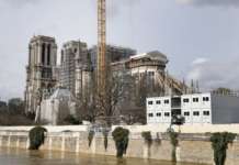 Работници беа забележани во понеделникот како се искачуваат на Богородичната црква во Париз за да го продолжат нејзиното реконструирање, 11 месеци откако пожар го...