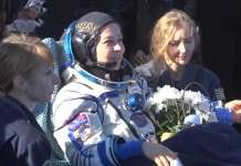 Руските актерка и режисер кои поминаа 12 дена на Меѓународната вселенска станица (ИСС) за да го снимат првиот филм во вселената, утрово се вратија...