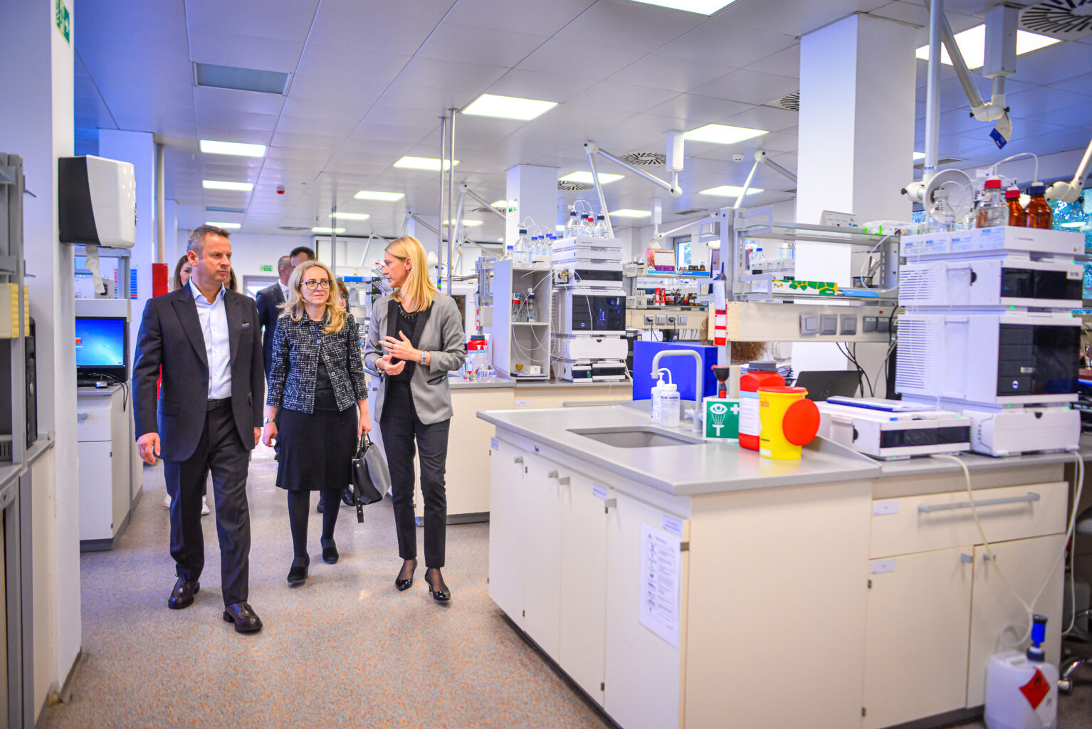 Членовите на делегацијата, предводени од амбасадорката Аксинте, при обиколката на производствените капацитети од сегментот фармација, имаа можност непосредно да се запознаат со високото ниво на подготвеност и на стручност на човечкиот кадар кој управува со процесите, како и со најсовремената опрема и со модерните услови за работа на Институтот за истражување и развој на АЛКАЛОИД.