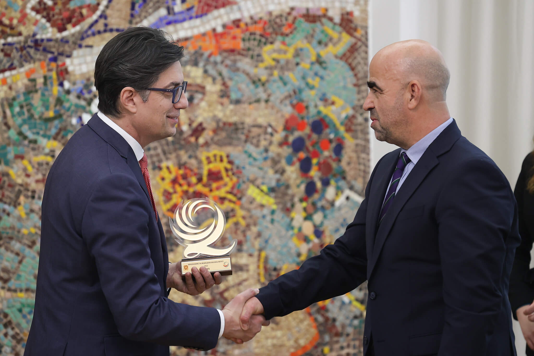 Претседателот Стево Пендаровски, денеска го додели признанието „Македонски квалитет“ за 2022 година на 10 претпријатија, кои дале значаен придонес во развојот на националната економија и нејзина промоција на меѓународно ниво.