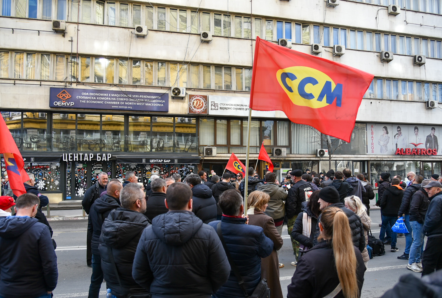 – Тука сме кај газдите, кај истите оние кои избркаа цели наши семејства во странство, кај газдите кои одбиваат да ја зголемат минималната плата и кои одбиваат да ги зголемат останатите плати. Владата веќе кажа дека се договарала со своите вработени, па ги остави газдите да бидат виновни за идниот генерален штрајк и во јавниот и во приватниот сектор- рече претседателот на ССМ, Слободан Трендафилов.