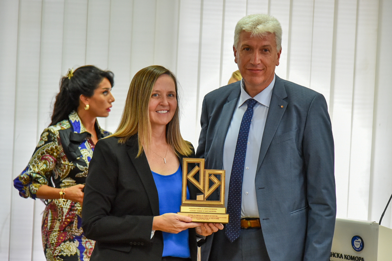 Стопанската комора му додели награда на премиерот Христијан Мицкоски за градење партнерство и заедничко дејствување за просперитетна Македонија.