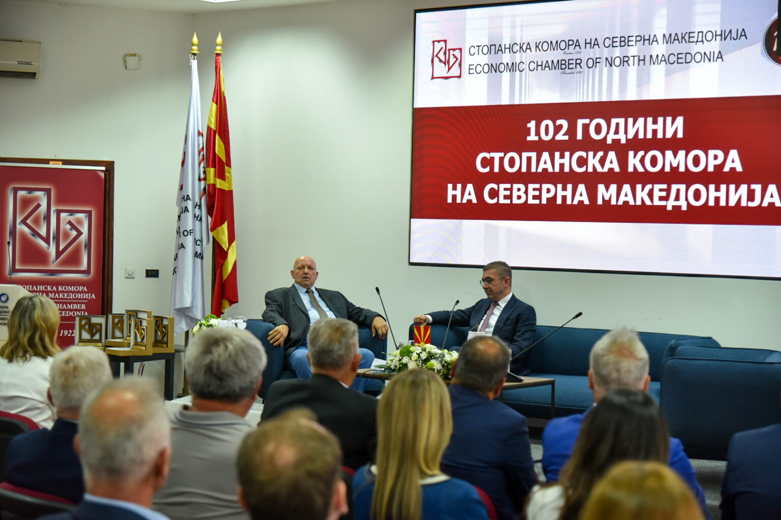 На денешниот настан по повод 102 години од постоењето, Комората им врачи награди и на бизнисмени во различни категории.