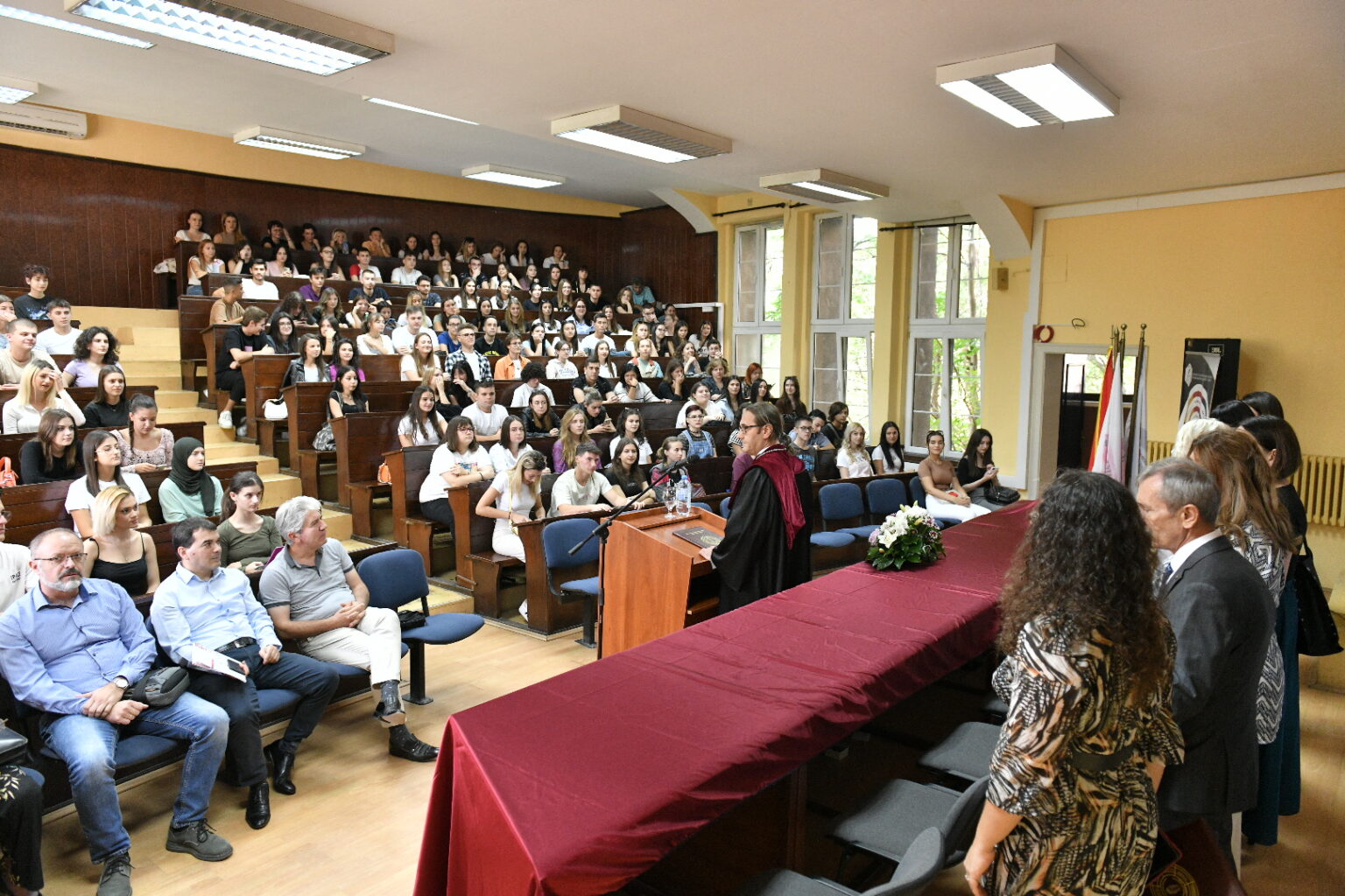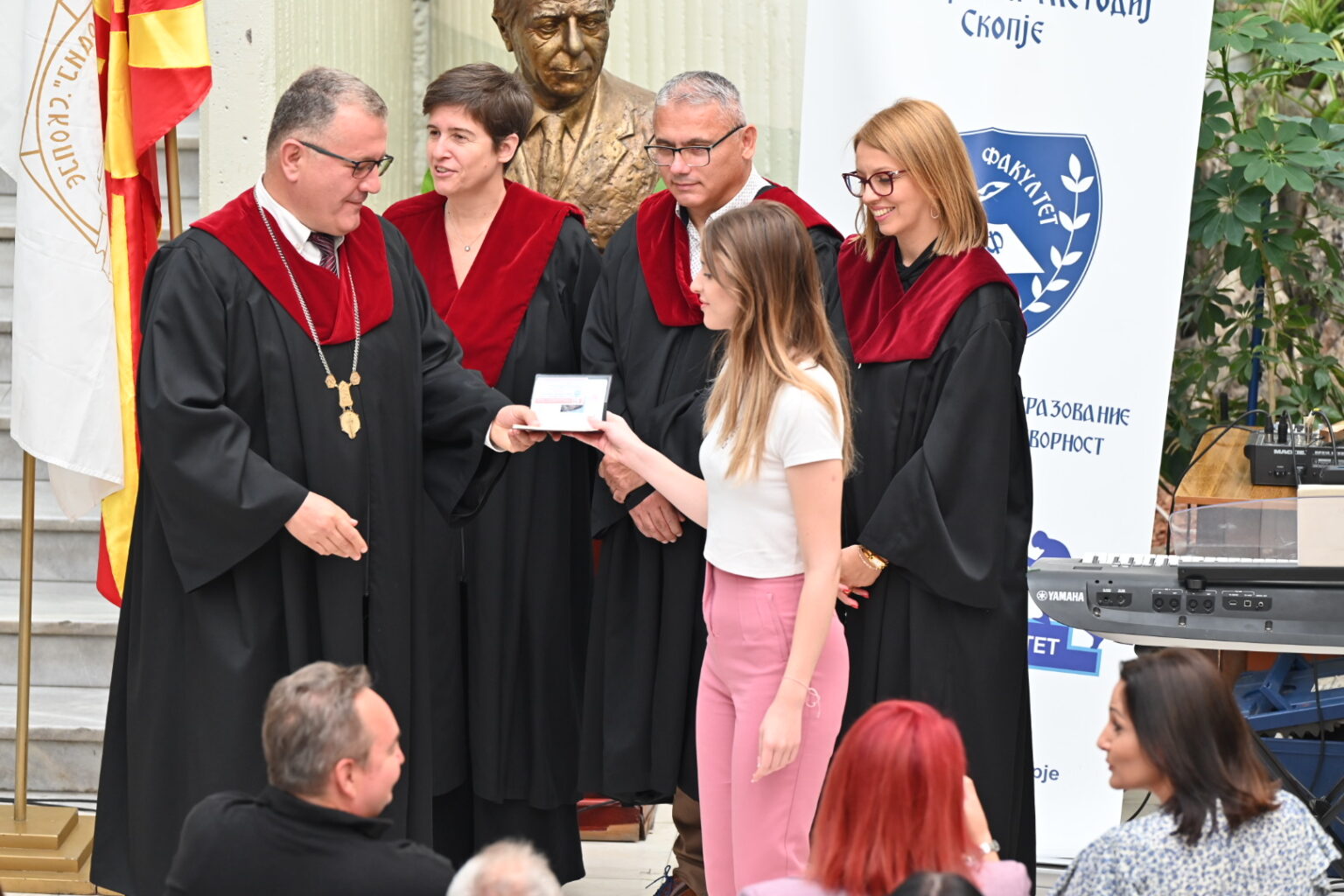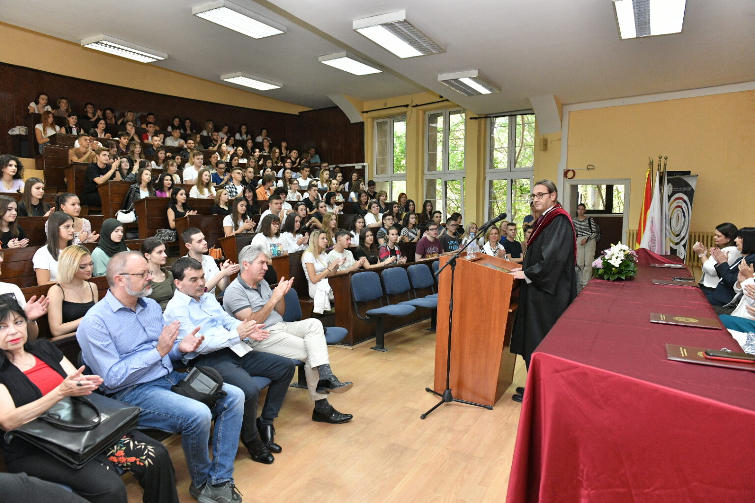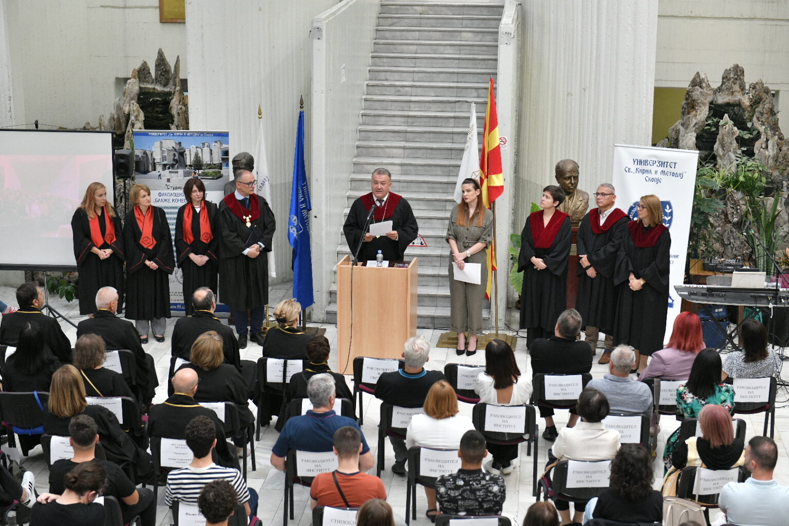 Заедничката аула на Филозофскиот факултет и Филолошкиот „Блаже Конески“ при Универзитетот „Св. Кирил и Методиј“ – Скопје денес беше полна со нови и студенти кои се запознаваа со просториите, кампусот, новите колеги и професори. Им се обрати новоназначениот декан на Филолошкиот факултет проф. д-р Владимир Мартиновски, кој покрај посакувањето успех ги претстави и новите програми на катедрите. Потоа заедно со деканот на Филозофскиот факултет, проф. д-р Ратко Дуев, ги доделија индексите на најдобрите 10 студенти запишани во прва година на двата факултета.
