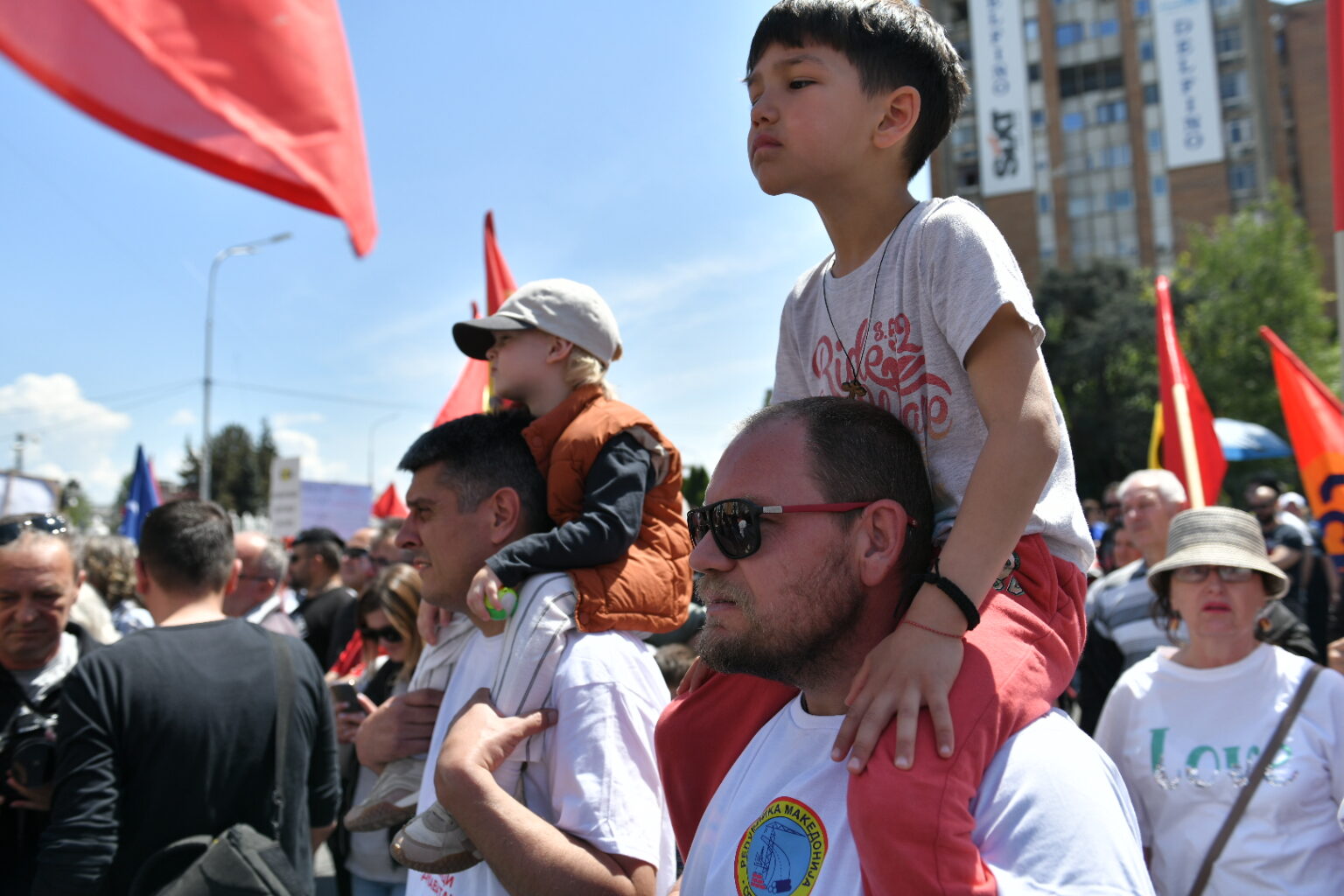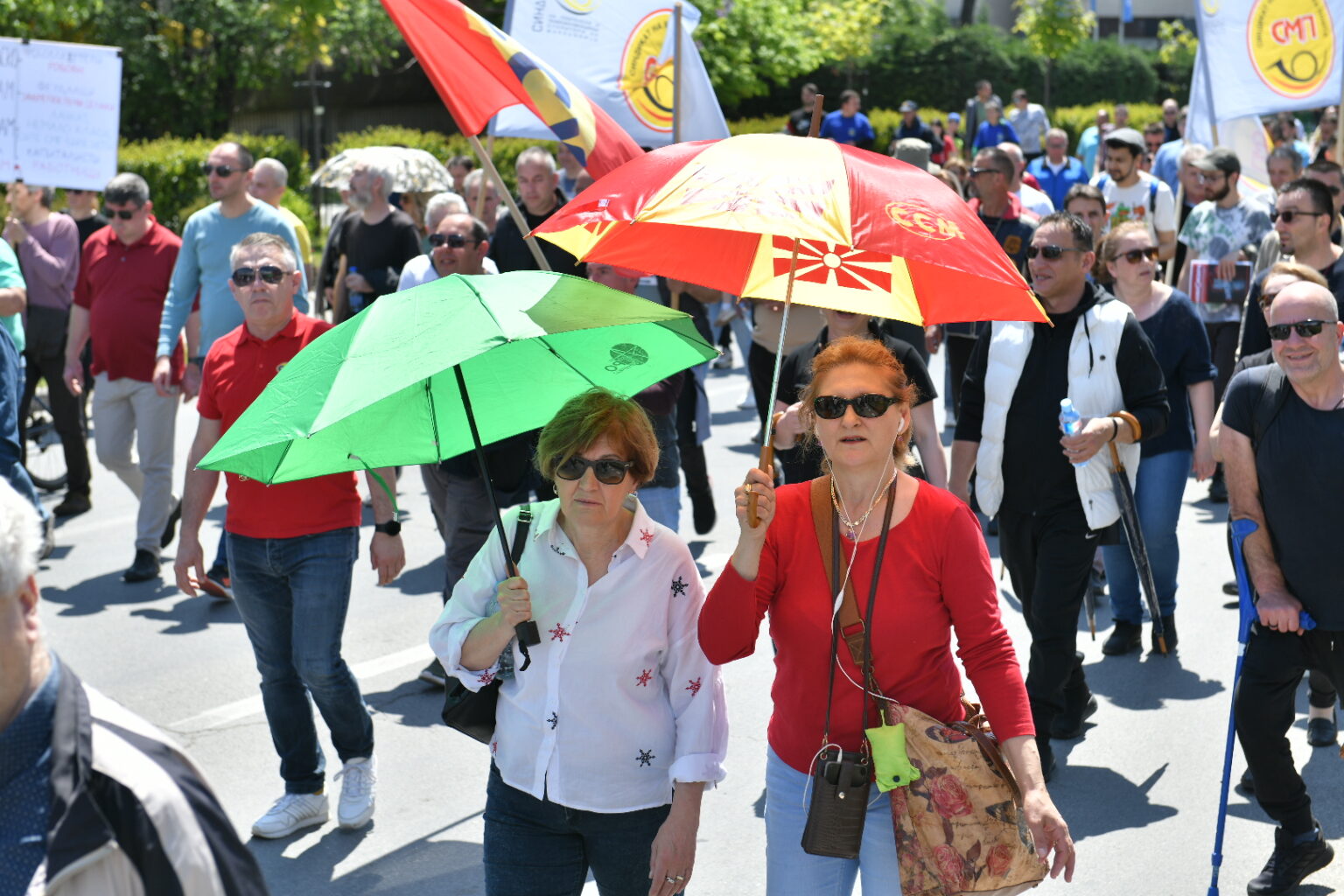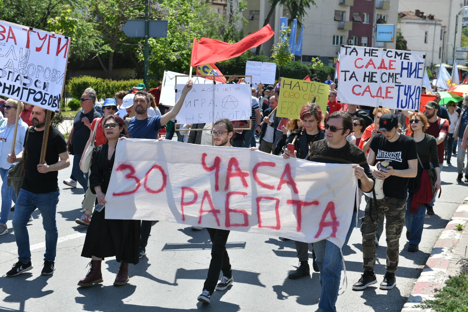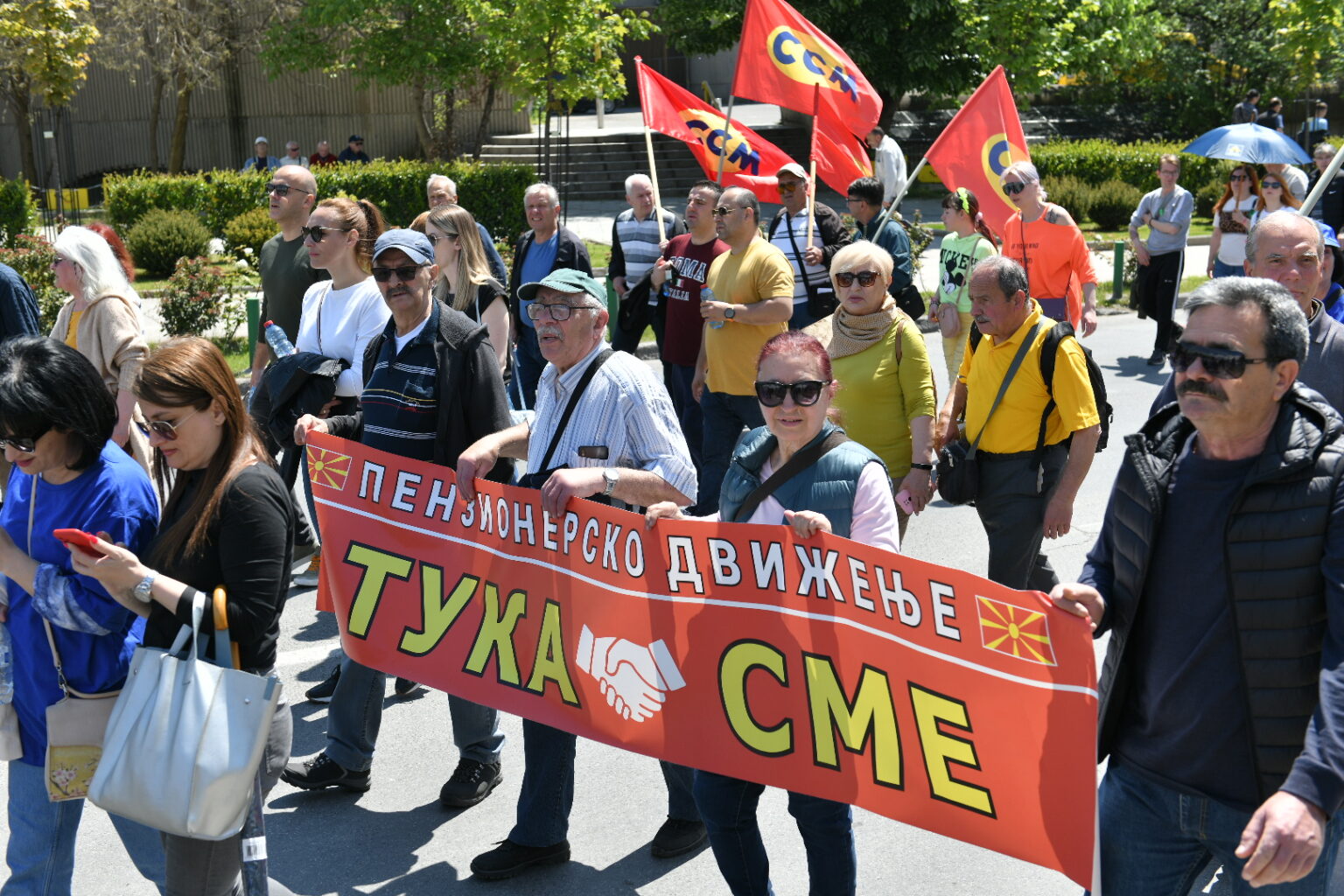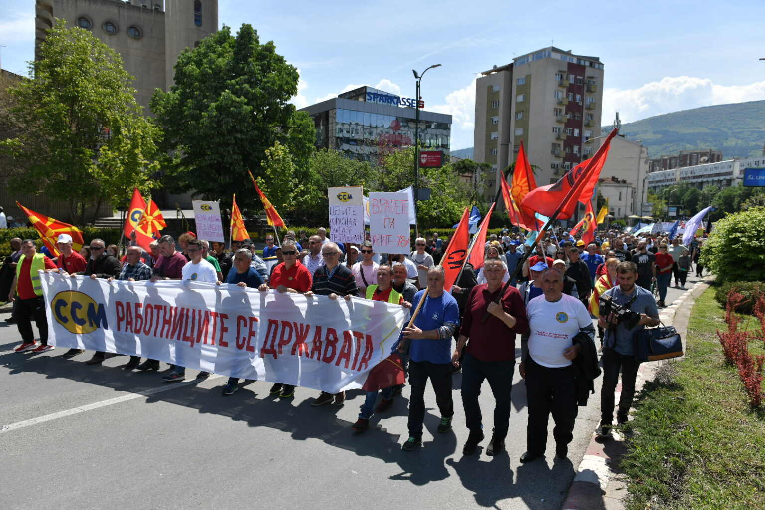 Протестниот марш по повод 1 Мај почна од пред седиштето на Сојузот на синдикати, продолжи пред Собранието, па пред Владата.