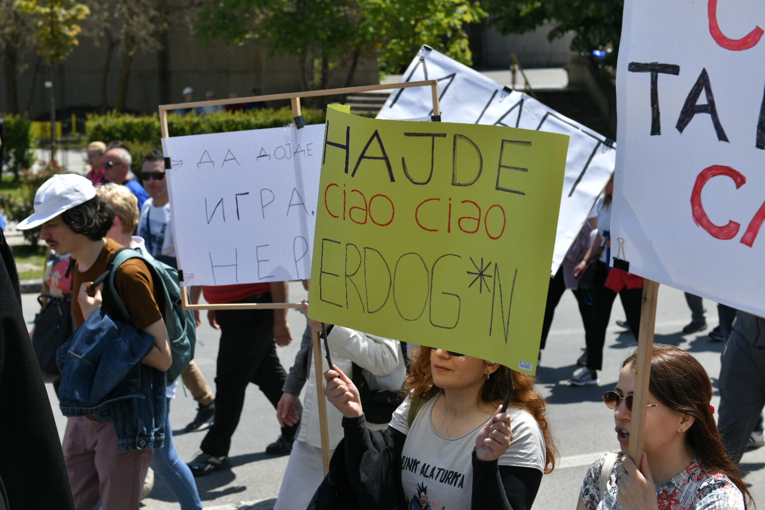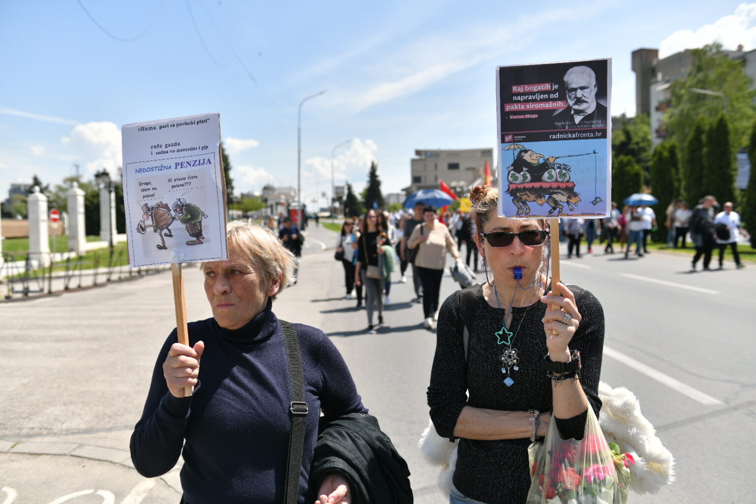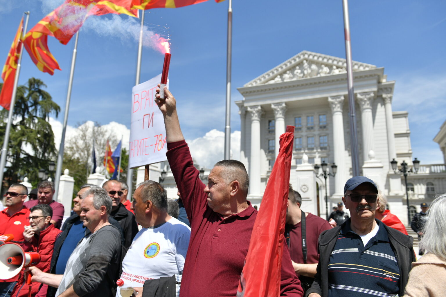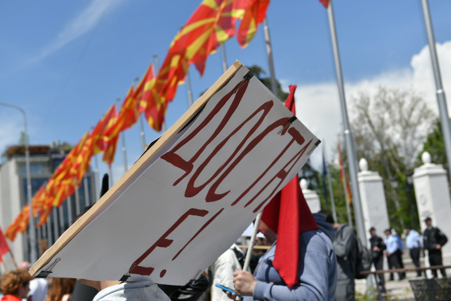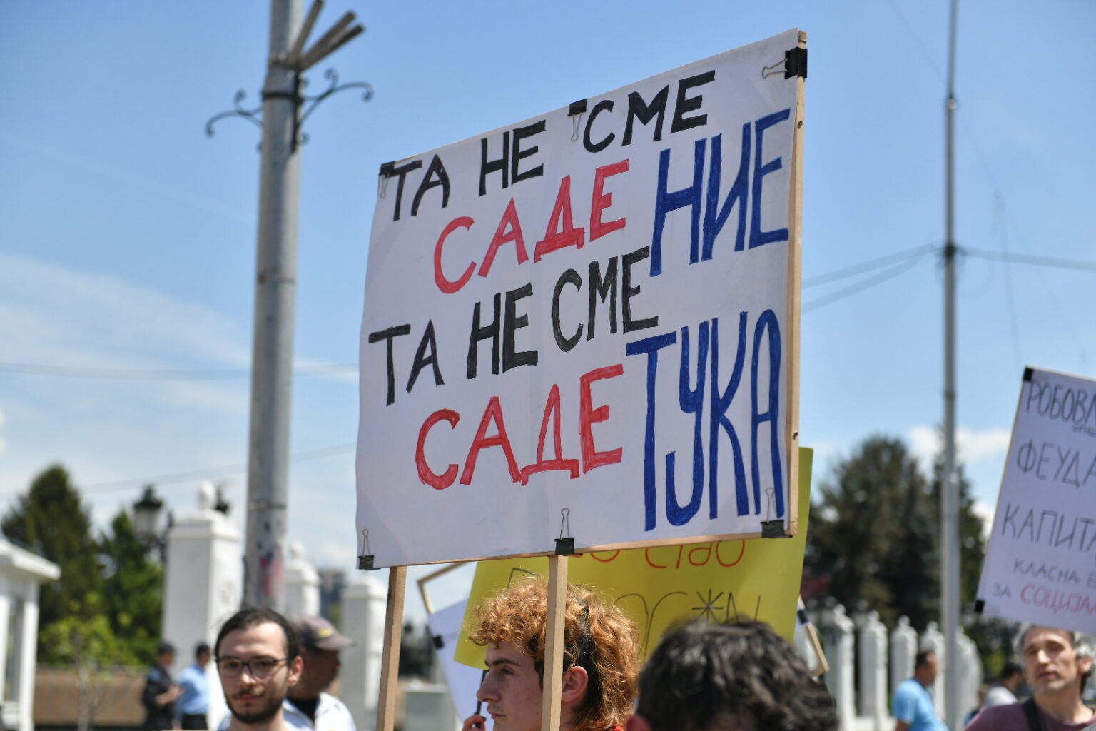 Протестниот марш по повод 1 Мај почна од пред седиштето на Сојузот на синдикати, продолжи пред Собранието, па пред Владата.