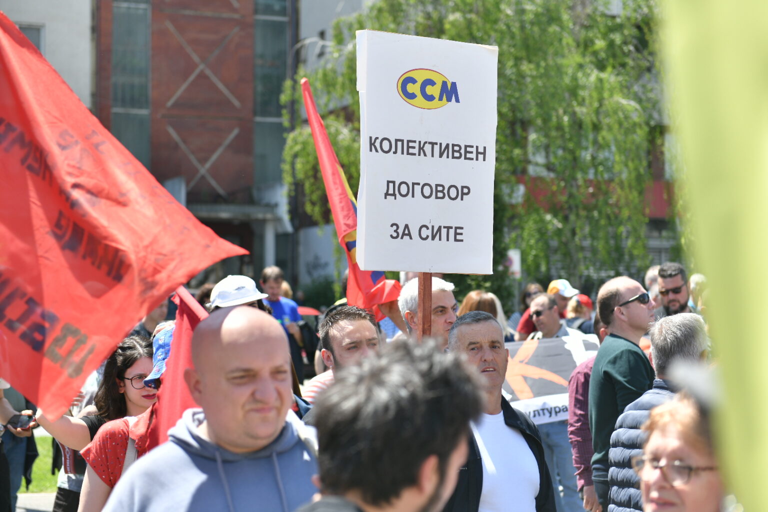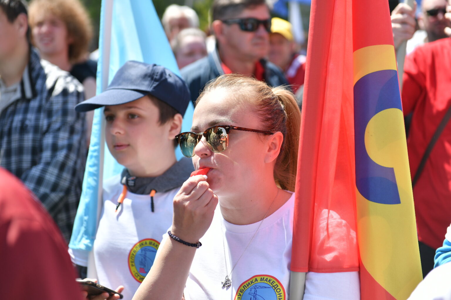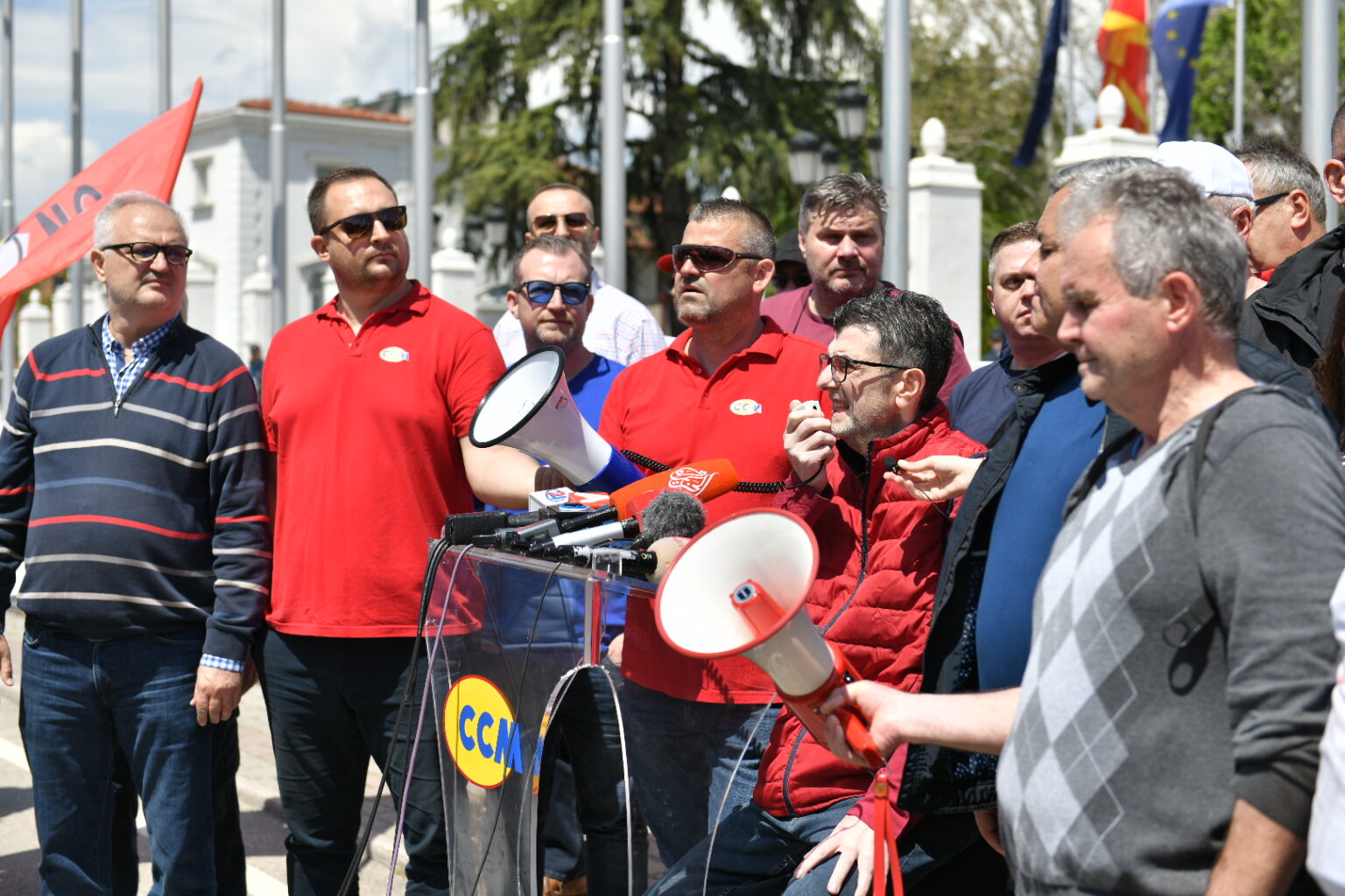 Работниците се лути на функционерите кои си добија покачување на платите за 78 отсто, а минималната плата ја зголемуваат за 2.000 денари. Тие при говорот на Дарко Димовски, претседател на Сојузот на синдикати на Македонија, викаа „уа“ додека тој говореше за функционерските плати.