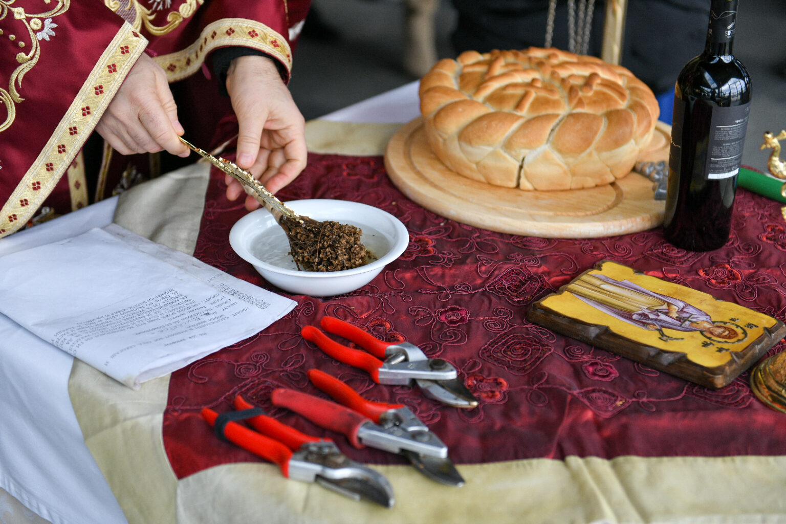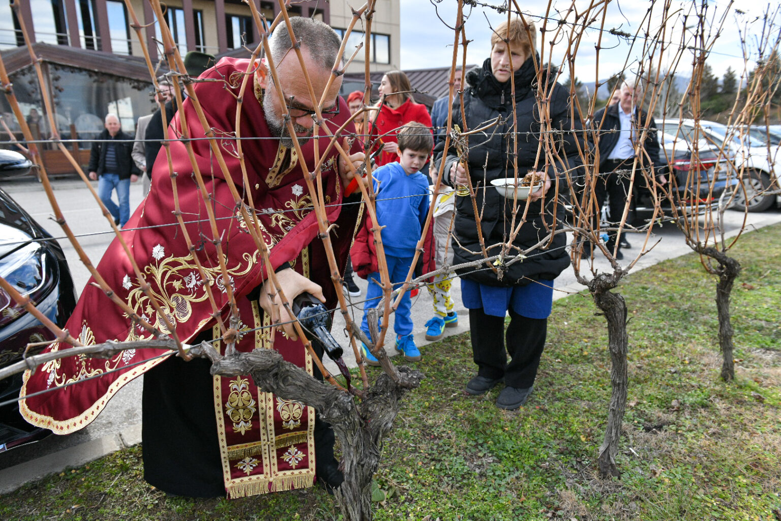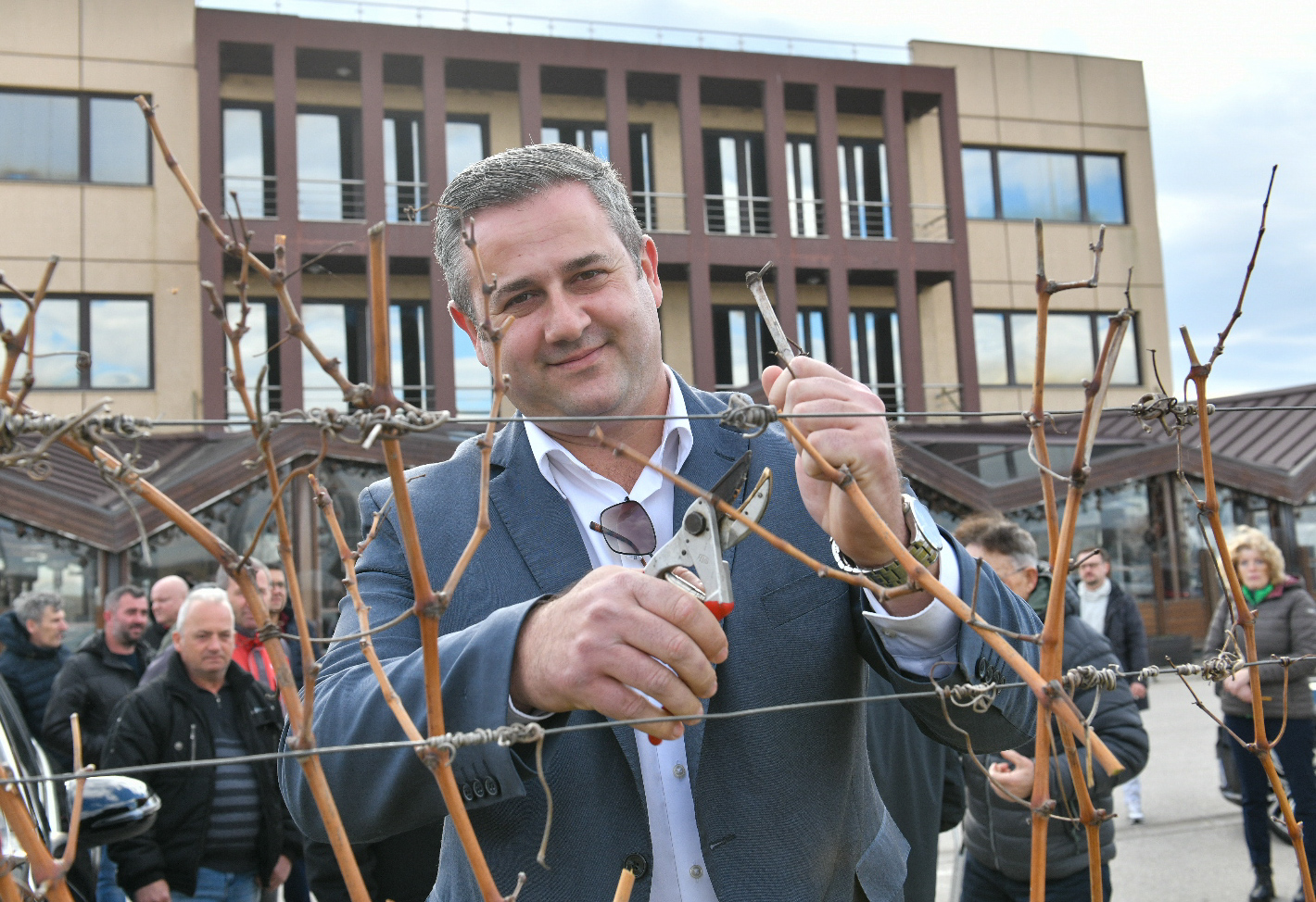 Откако го направи првото традиционално закројување на лозјето, ги повика и останатите вработени во компанијата да се вклучат во традицијата за плодна година. На тој начин винарницата „Стоби“ ја продолжи долгогодишната традиција за одбележување на празникот Свети Трифун.