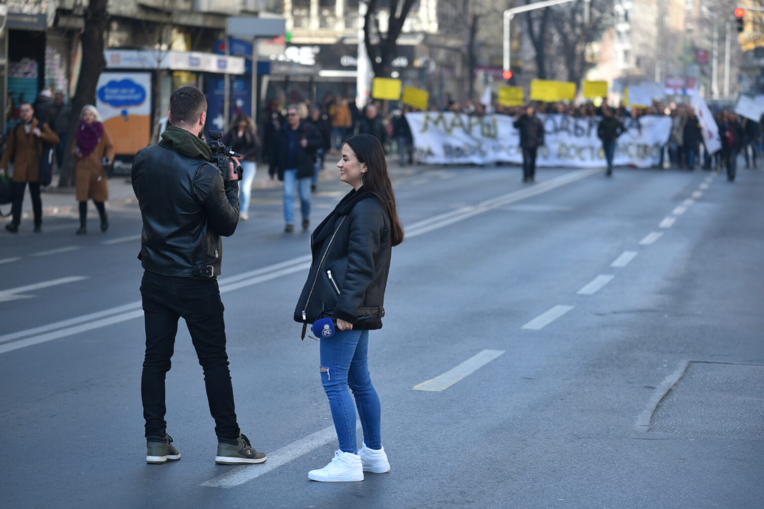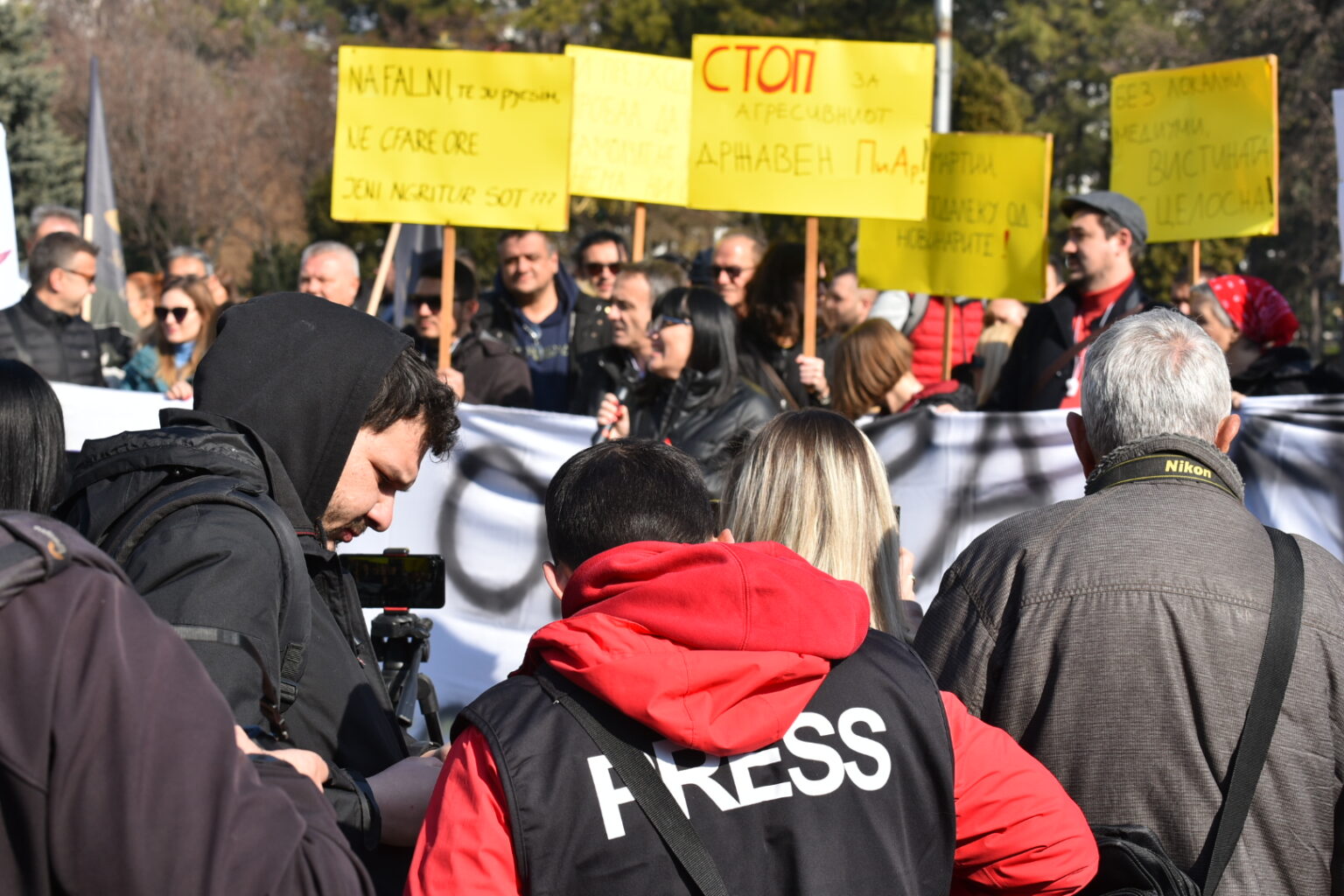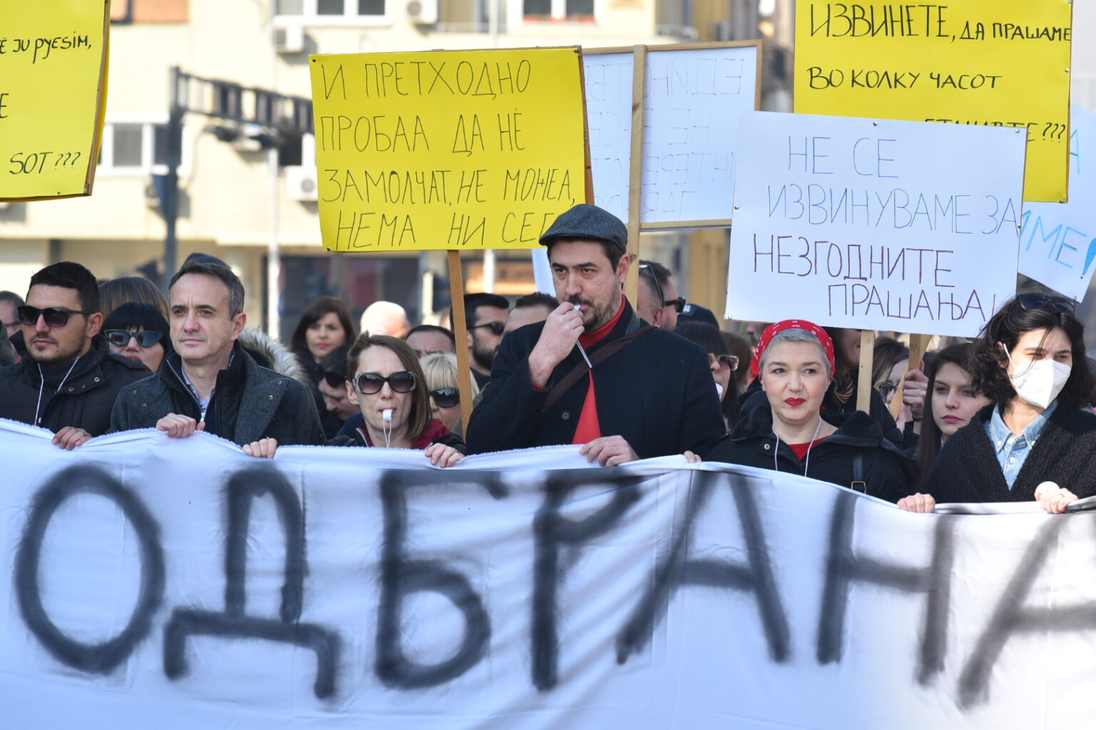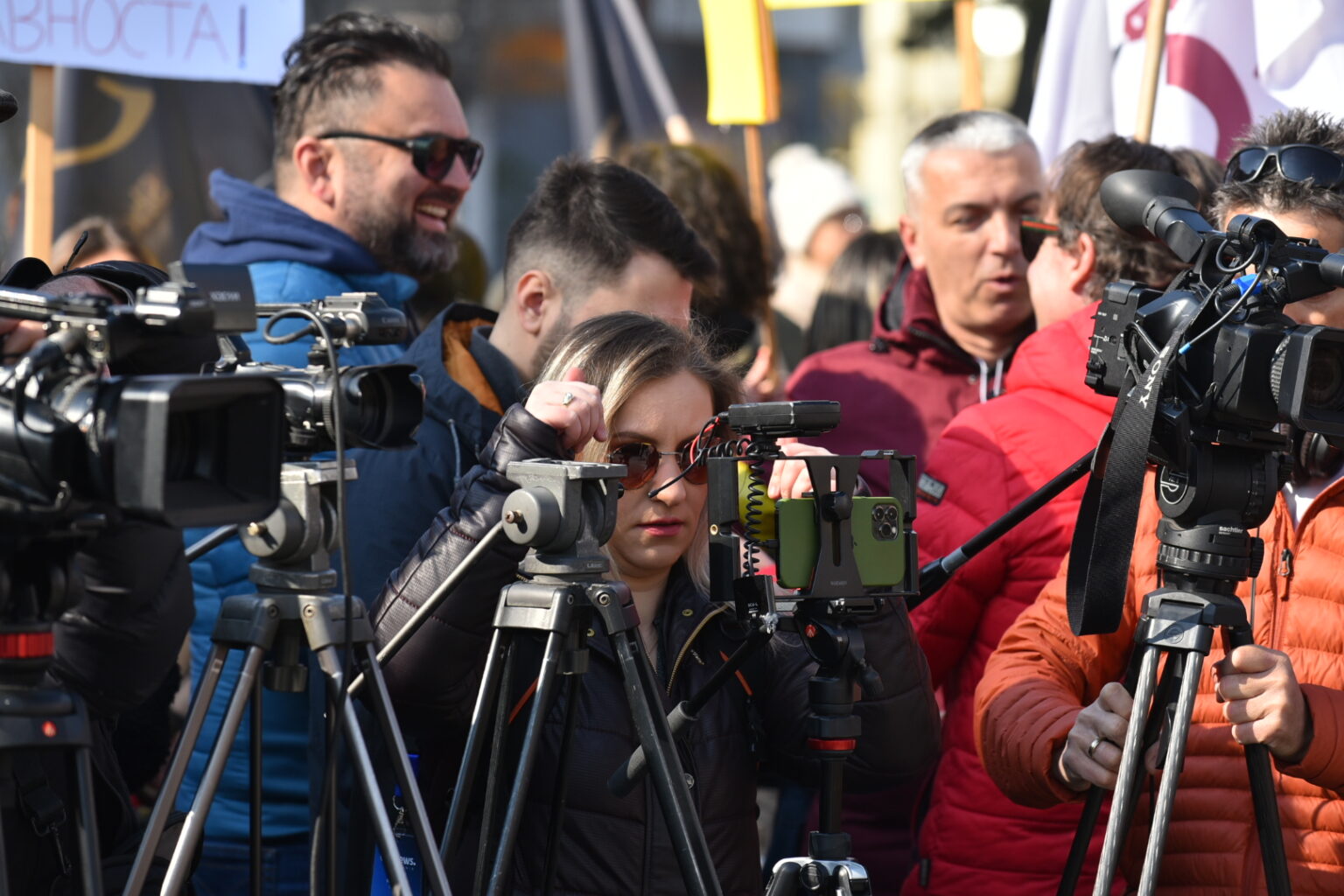 „Не се извинуваме за незгодните прашања“, „Ги газите новинарте, го газите слободното општество“, „Без локални медиуми вистината не е целосна“, „Новинарството на удар, ние сме обединети”, „Нема да молчиме”, „Сиромаштија = самоцензура“ се дел од пораките што новинарите и медиумските работници денеска ги испраќаат на протестен марш од пред Владата до Собранието.