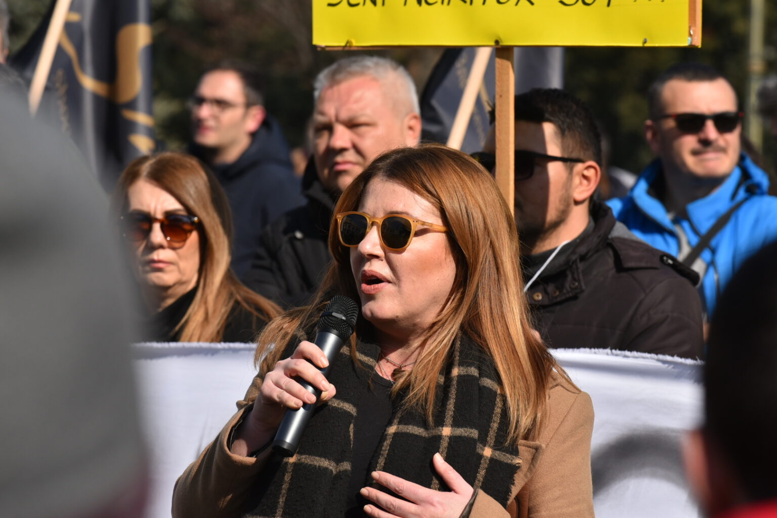 -Не молчевме кога се обидуваа да создадат страв, напротив создадоа џин, а тоа сме ние. Да бидеме јасни и да укажеме што бараме. Една од причините е да ја кренеме свеста во каква состојба се наоѓаат новинарите, се помалку кадар, ниски плати. Повеќе од итно е да се донесат решенија за подобрување на состојбата, со кој работодавците ќе добијат квалитет а ние сигурност. Бараме услови а не милостина. Слушајте не нас а не оние кои не напаѓаат – рече председателот на ССНМ, Павле Беловски.