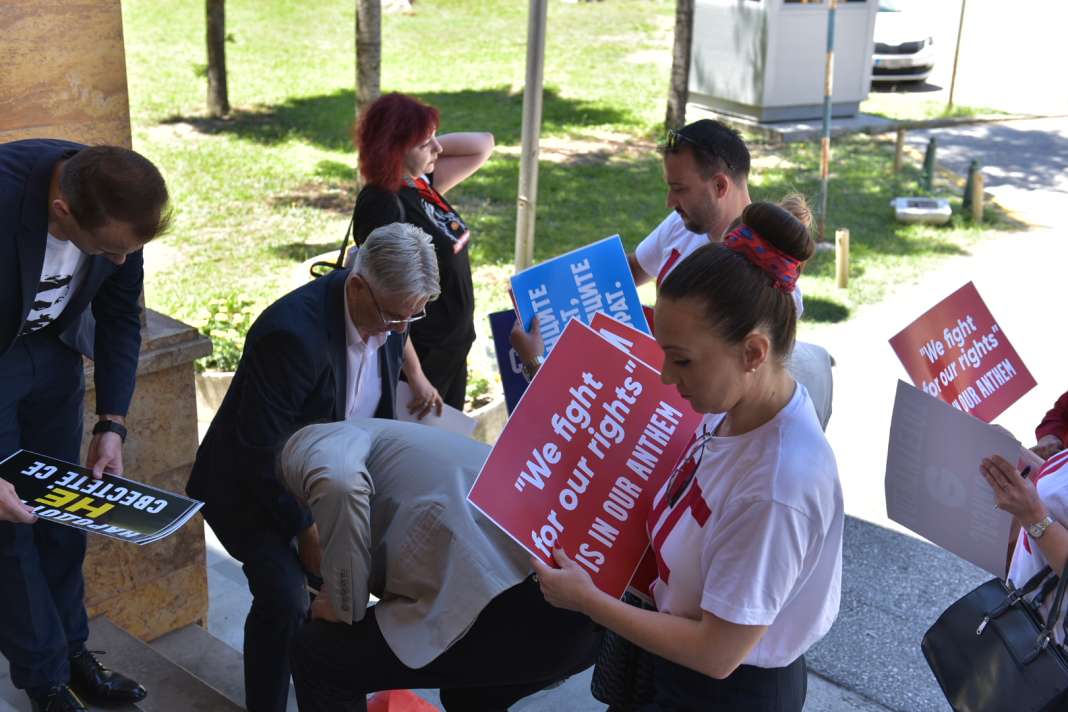 Пред Собранието денеска напладне почна протестот против францускиот предлог.