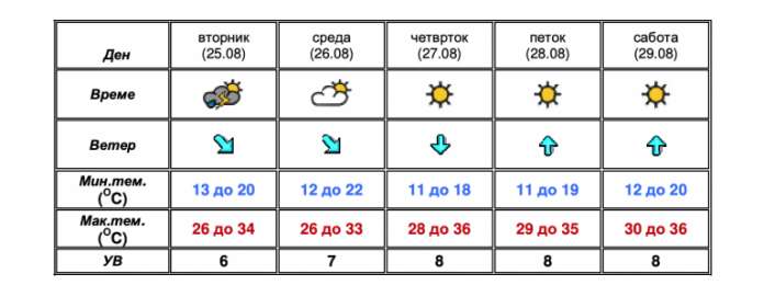 засилен ветер. Во вторник локално процесите ќе бидат поинтензивни во форма на невреме со пообилен дожд за кратко време, силен ветер и изолирана појава на град. Од среда повторно ќе преовладува сончево и топло време.