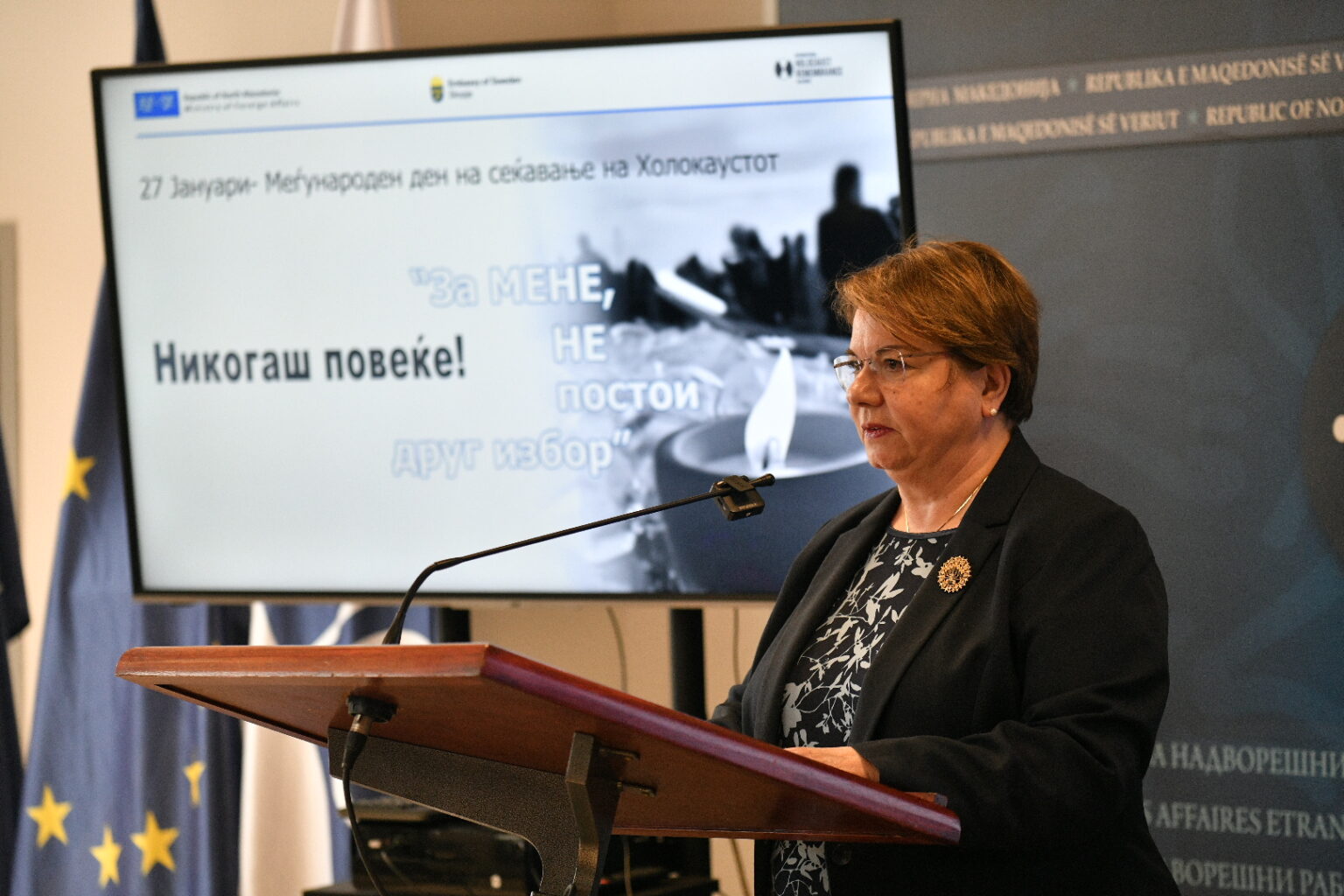 Како земја членка на Меѓународната алијанса за сеќавање на Холокаустот (ИХРА), Северна Македонија се сеќава на сите жртви од оваа црна дамка на историјата на човештвото, со цел да не биде заборавена и надеж – никогаш повеќе да не биде повторена.