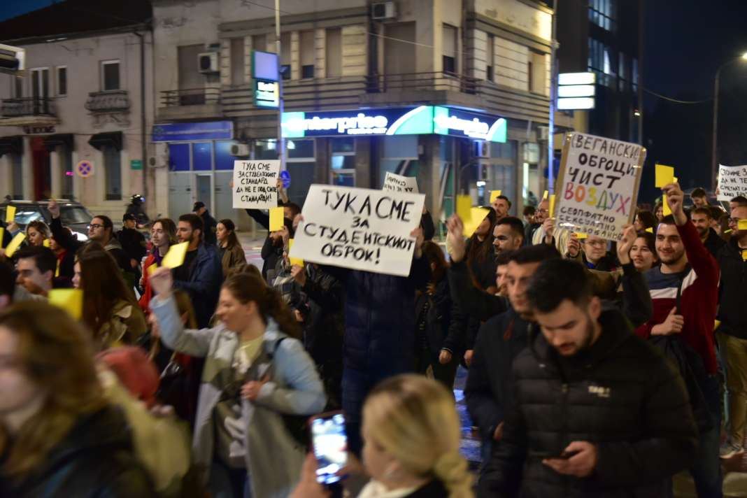 Маршот почна пред зградата на Владата, од каде студентите се упатија пред зградата на Министерството за образование, каде беа упатени пораки да им се овозможат услови и стандард како што заслужуваат, а за што, како што беше речено, нема компромис. Дел од студентите пред зградата на МОН оставија ливчиња „жолти картони“ со пораки и примероци од студентски оброк.