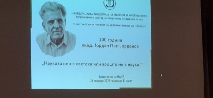 -Она што е суштинско за академик Поп Јорданов е дека тој не беше само автор на трудови, туку носител на вредности од него останаа институциите што ги создаде, генерации научници што ги обликува и пред се мисла што продолжува да живее во нашата работа. Тој ја сфаќаше науката како морална категорија. Во еден од своите записи го формулира она што и денес е нашиот ориентир, науката е светска или воопшто не е наука. Тој навистина ја живееше таа реченица, неговото присуство во повеќе странски академии, неговите меѓународни проекти, врвни меѓуародни научни конференции, неговите предавања ширум Европа, Америка и Азија, сето тоа беше последица на еден длабок внатрешен принцип дека науката мора да биде дел од светот, е не затворена во одредени граници – нагласи претседатот на МАНУ пред присутните.
