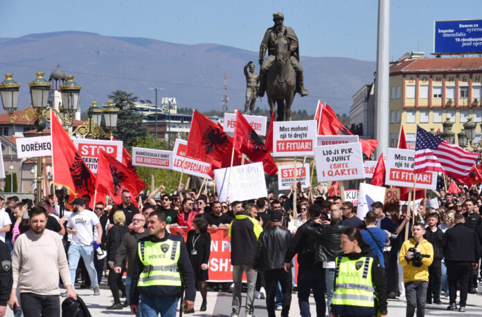 Завчерашниот протест на неколку стотини студенти Албанци од трите универзитета – Државниот универзитет во Тетово, државниот универзитет „Мајка Тереза“ во Скопје и приватниот Штулов универзитет во Тетово, организиран, како што беше најавен, за да се искаже „незадоволството поради јазичната дискриминација на Албанците“ и „неспроведувањето на Законот за употреба на јазиците при полагањето на правосудниот испит“, доби белези не само на отфрлање на македонскиот јазик како единствен официјален јазик туку и на скандалозно непочитување на државата Македонија и упатување закани кон неа и нејзините институции!