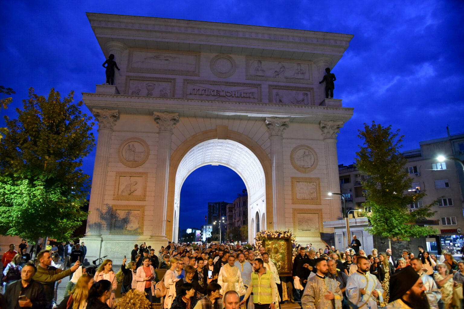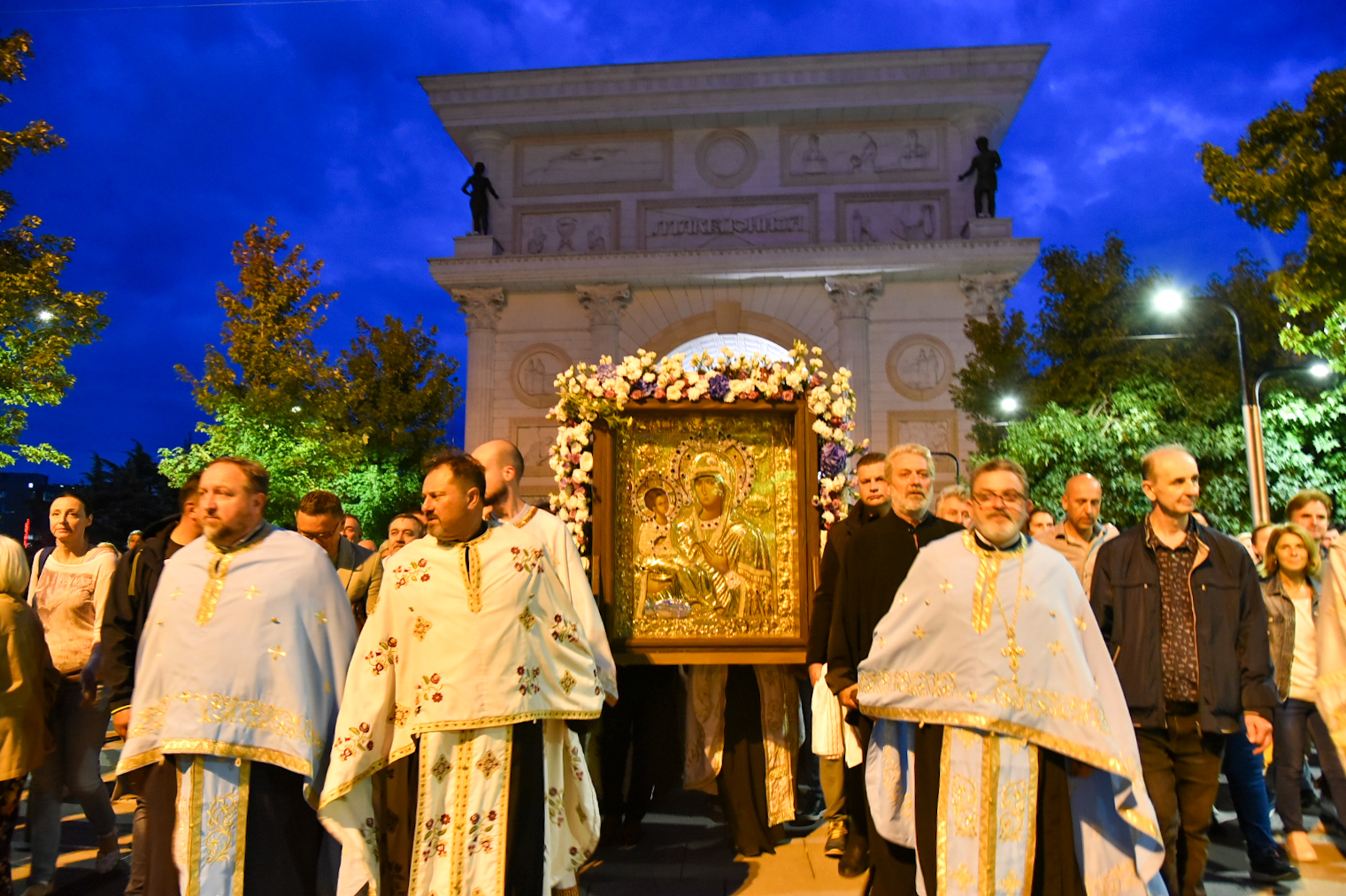 Пред храмот „Рождество на Пресвета Богородица” во Скопје попладнево свечено беше пречекана Богородичната икона Троеручица од светогорскиот манастир Хиландар. Иконата ја пречекаа архиепископот охридски и македонски г.г. Стефан и голем број свештени лица и верници. По вечерната богослужба се одржа литија низ центарот на Скопје.
