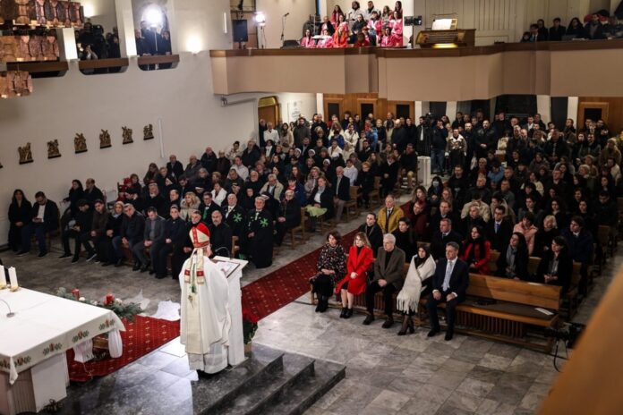 Во катедралата „Пресвето Срце Исусово“ во Скопје синоќа скопскиот бискуп и струмичко-скопски епарх Киро Стојанов служеше полноќна божиќна света литургија, на која ја упати својата Божиќна порака.