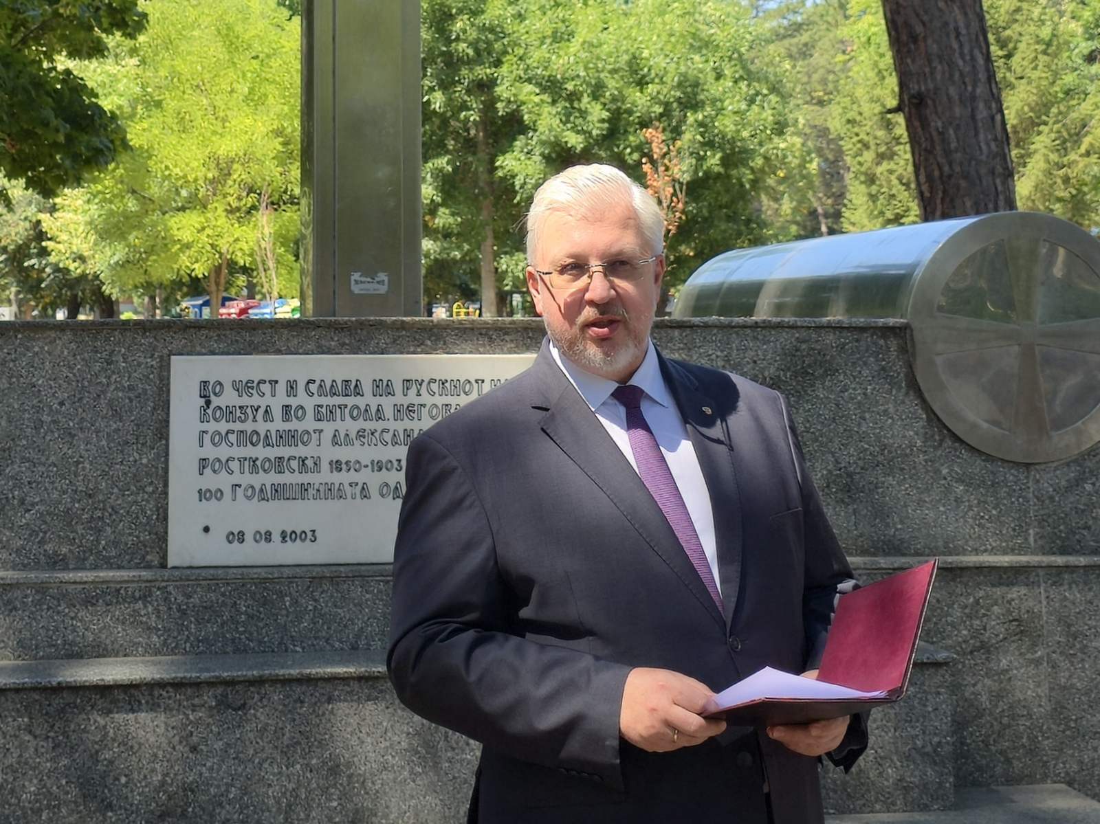 -Токму тука, во 1860 година, беше основан првиот руски императорски конзулат на Балканот, кое се отвори на 23 април 1861 година – патем речено, на православен Велигден. Дипломатите кои работеле тука активно му помагале на локалното население. Во 1901 година, со преобразувањето на вицеконзулатот во конзулат, руски императорски конзул во Битола стана Александар Аркадјевич Ростковски. Познато е дека тој со чест ја извршуваше својата мисија, вклучително и посетувајќи ги словенските села и поддржувајќи го христијанското население на Македонија. Неговата дејност придонесе за процесот на ослободување на словенските народи на Балканот, за формирањето на македонската национална свест. Ростковски активно ги поддржуваше идеите за автономија на Македонија, верувајќи дека секој народ треба да се развива по својот сопствен пат – рече Баздникин.
