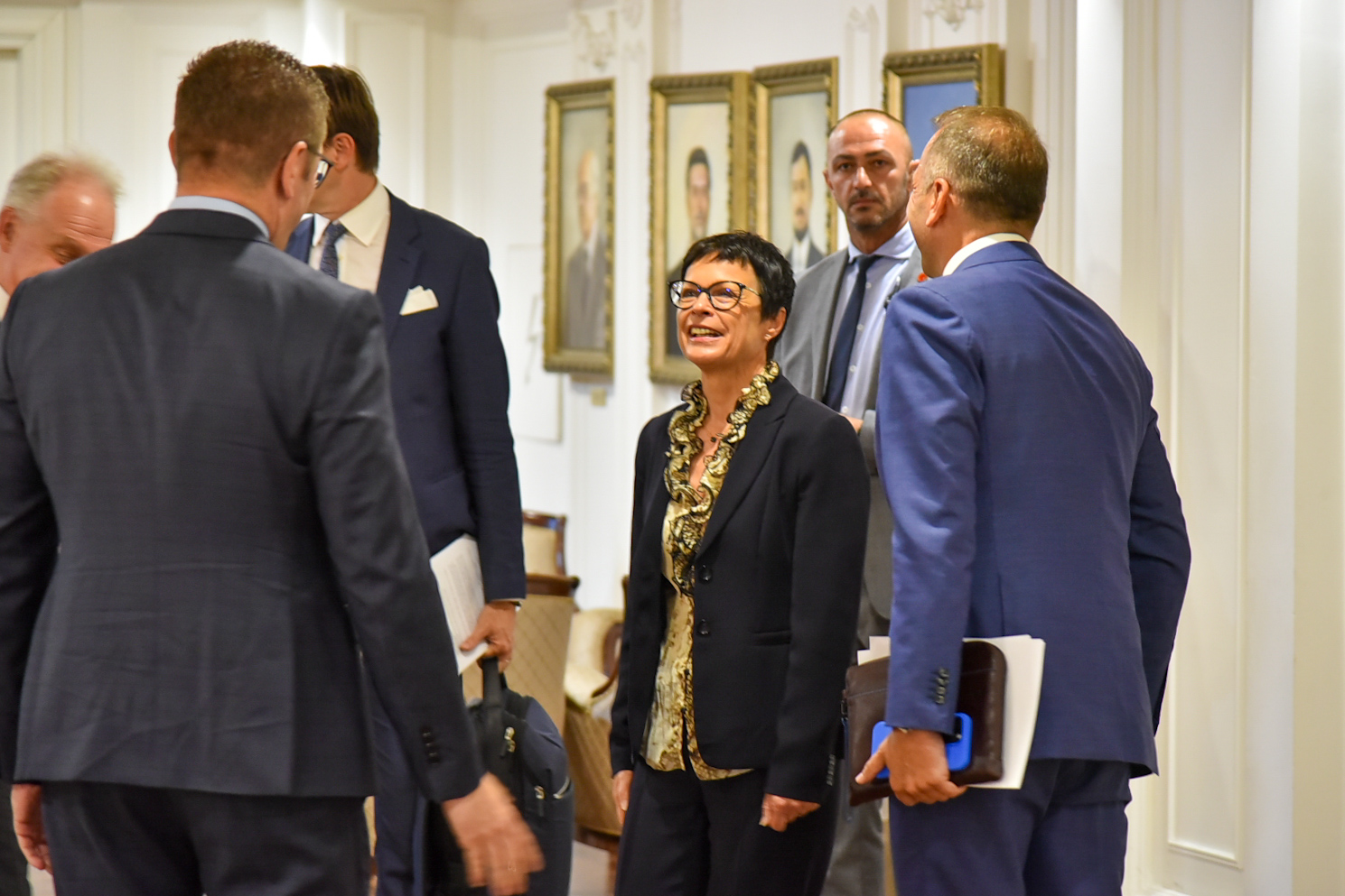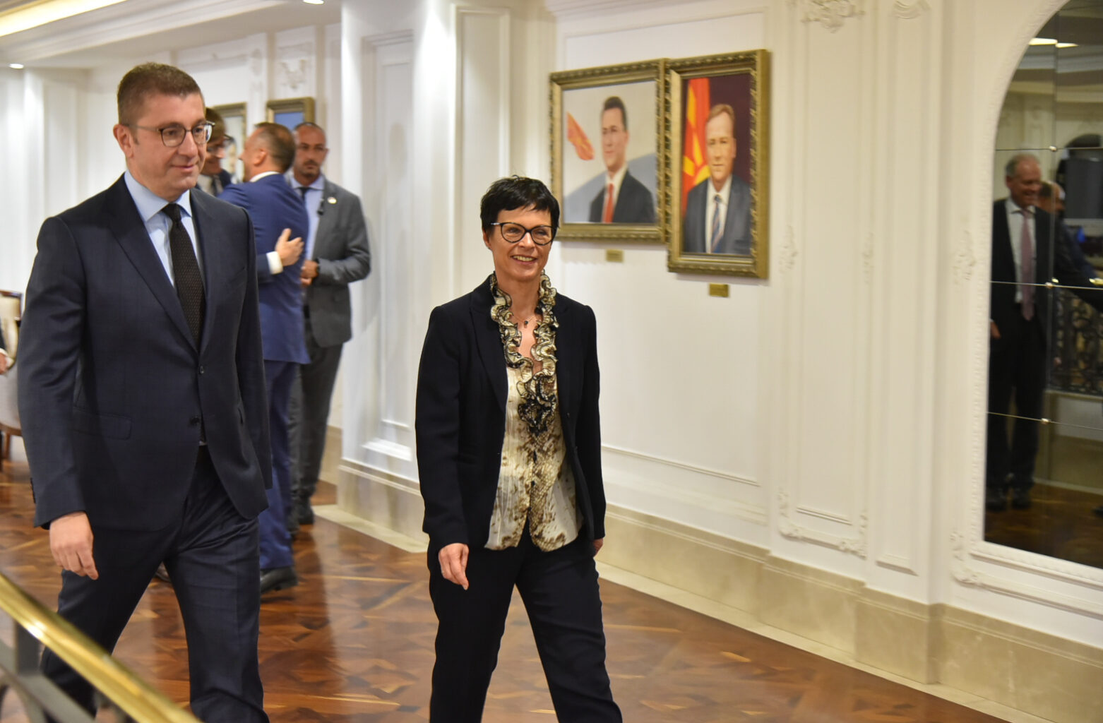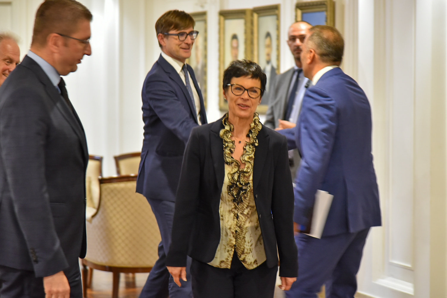 На Меѓународниот аеродром во Скопје таа беше пречекана од шефот на дипломатијата Тимчо Муцунски, кој и посака срдечно добредојде.