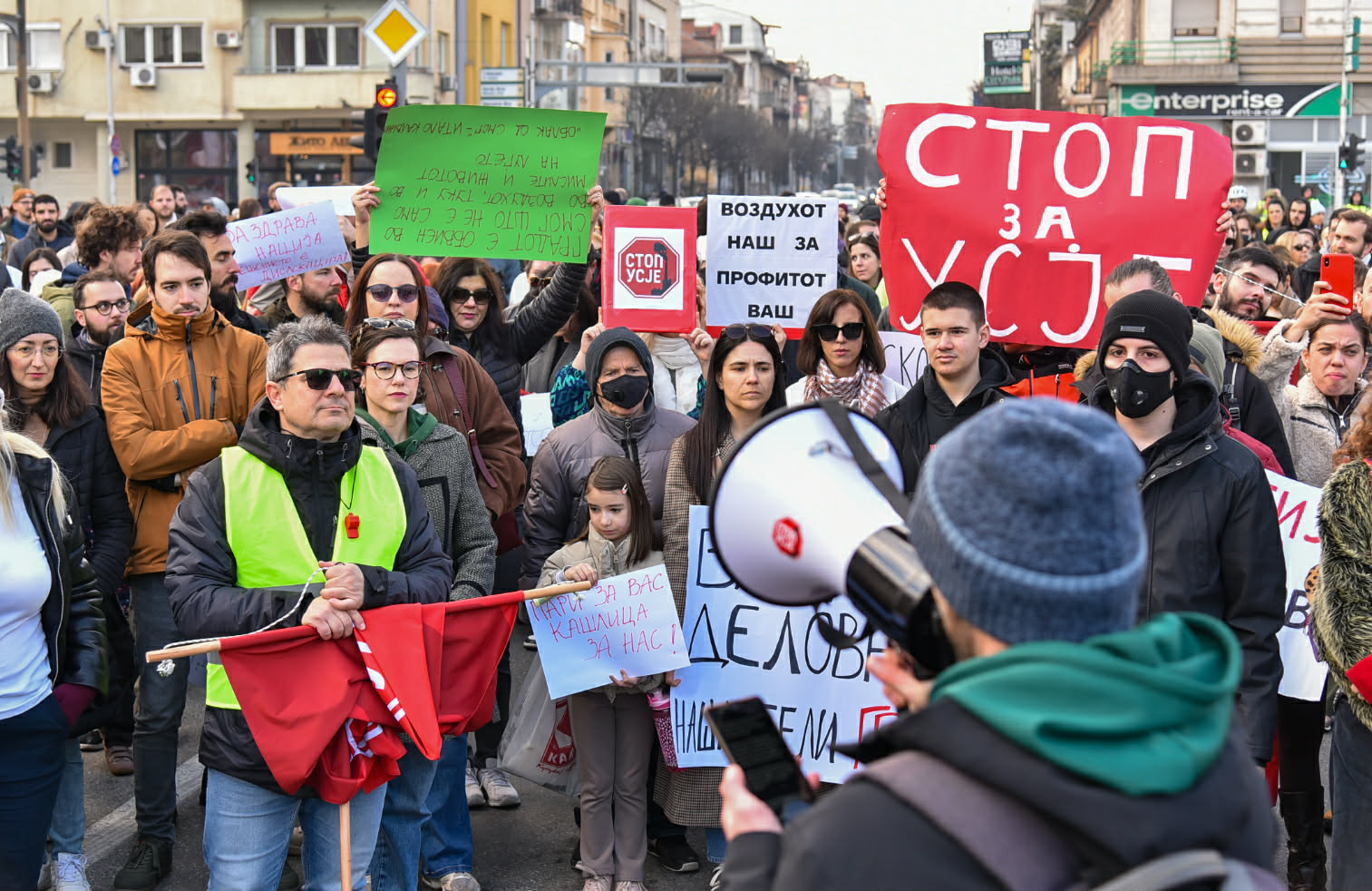Еколошките активисти од иницијативата „Стоп за Усје“ и граѓани денеска протестираа поради загадувањето на воздухот и бараа од Цементарница „Усје “ да работи според еколошките стандарди зашто, порачаа тие – скопјани имаат право на здравје и живот.