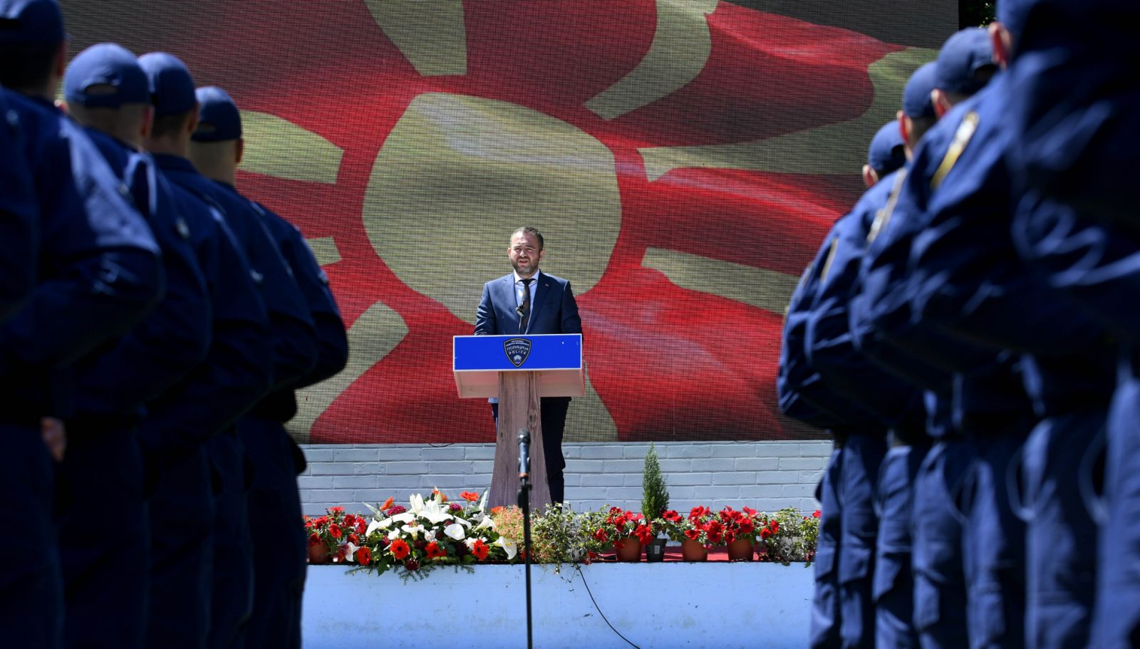 Покрај националната химна, новите професионални полицајци на настанот ја запеаја песната „Бисер балкански“