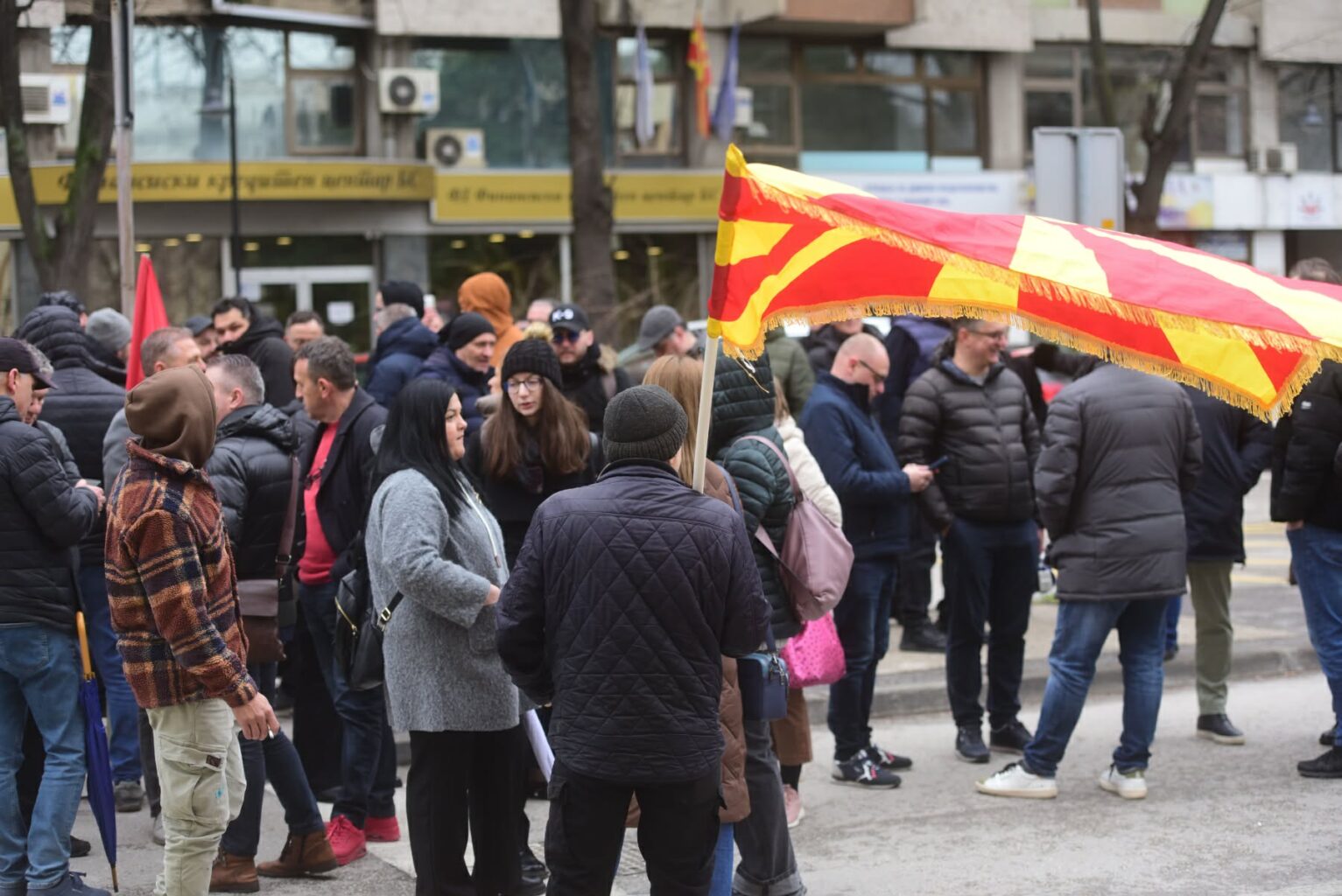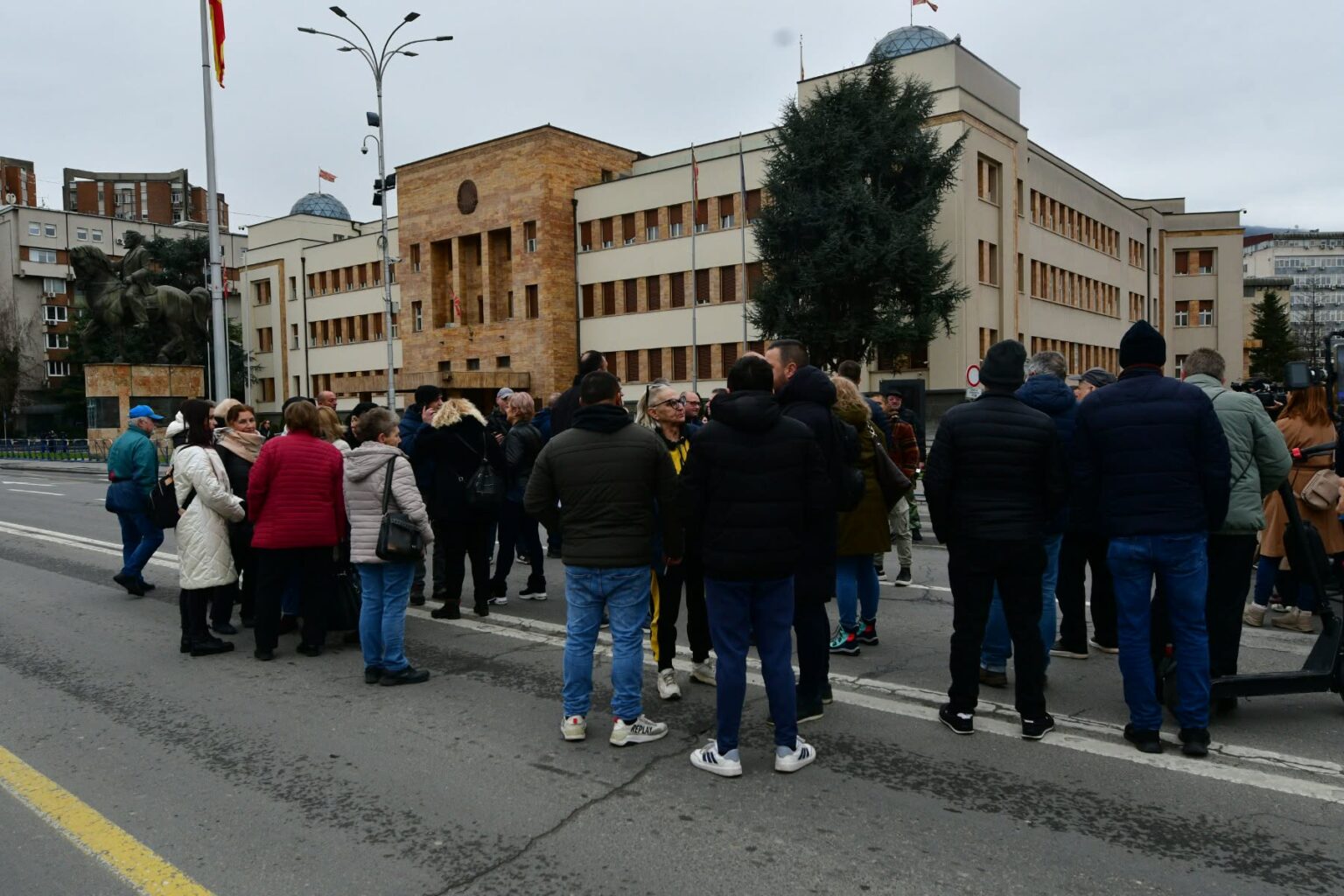 Работниците, предводени од Сојузот на синдикати на Македонија (ССМ), започнаа протест пред Собранието, при што беа блокирани двата приода до Законодавниот дом. Поради блокадите, пратениците беа принудени до зградата да пристапат пеш.
