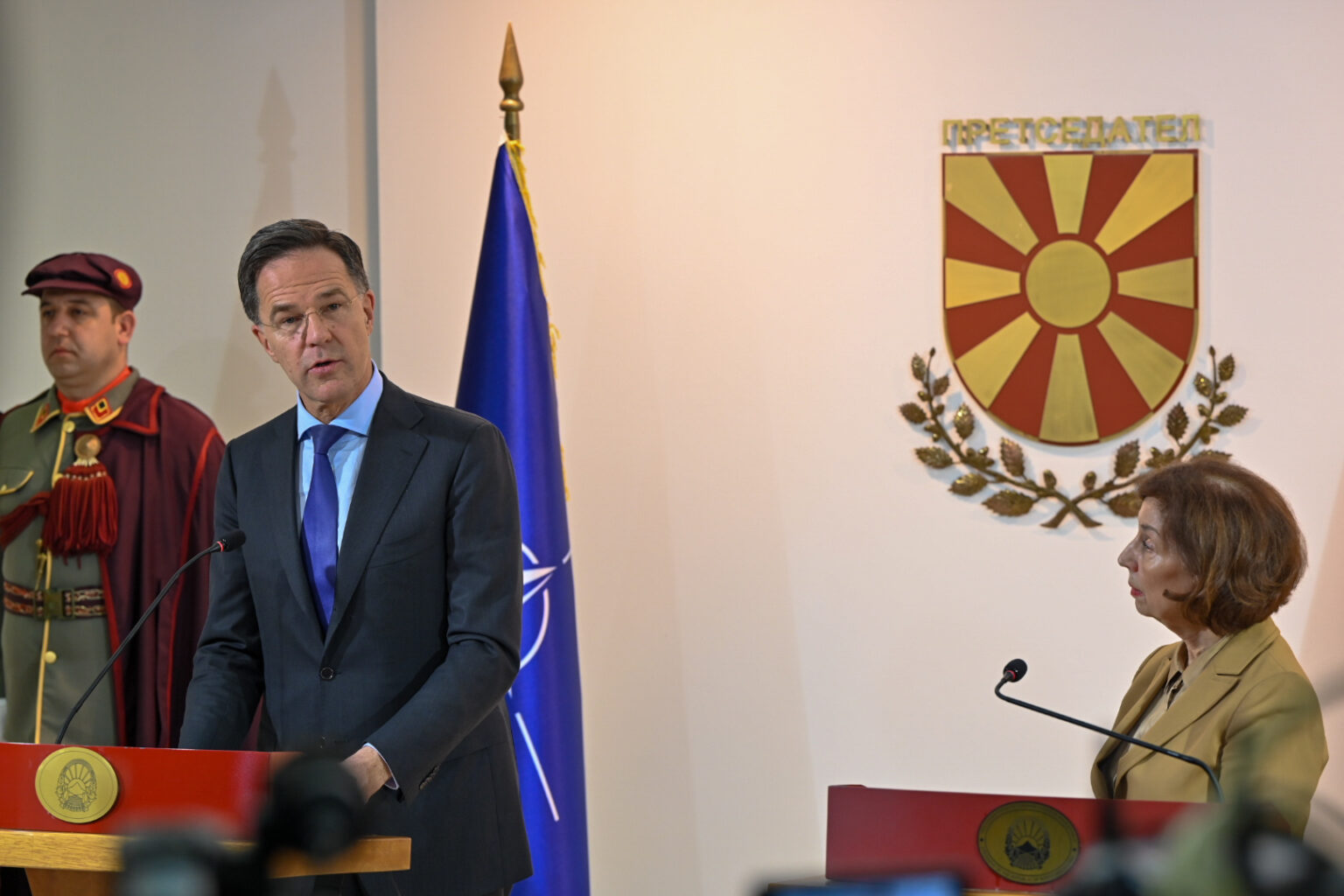 – Нашата посветеност кон регионалната стабилност е јасна, нема да дозволиме да се појави безбедносен вакуум. НАТО е посветен на заштита на сите свои сојузници, од каде и да доаѓаат предизвиците. Знам дека можеме да сметаме на Северна Македонија да го одигра својот дел – потенцира Руте на заедничката прес-конференција со Силјановска Давкова.