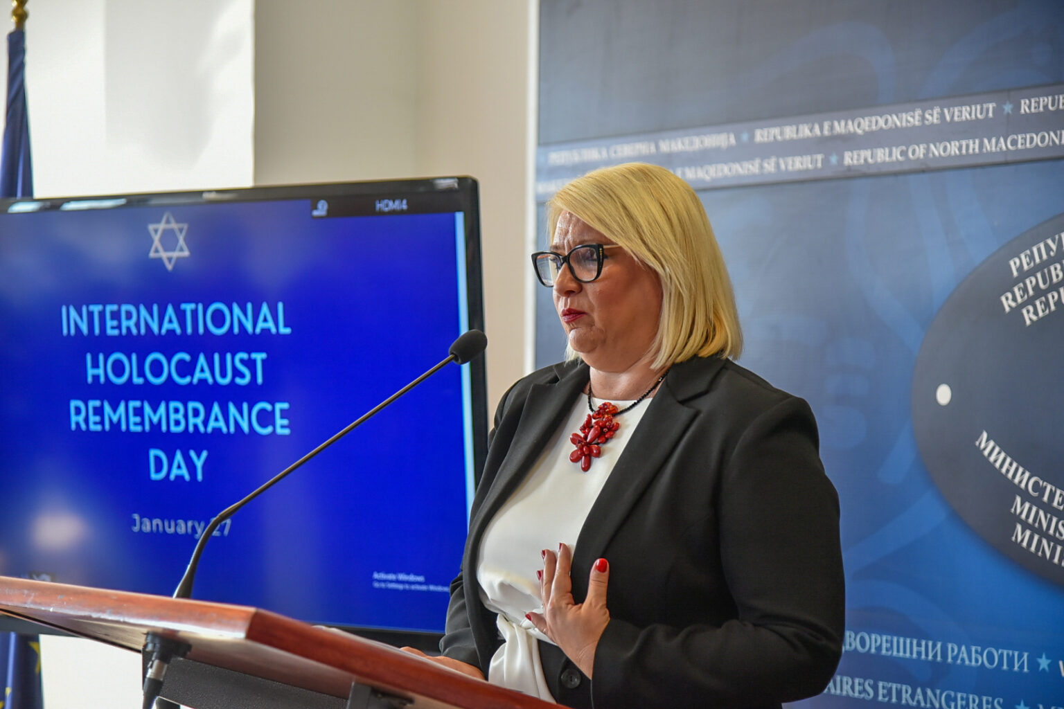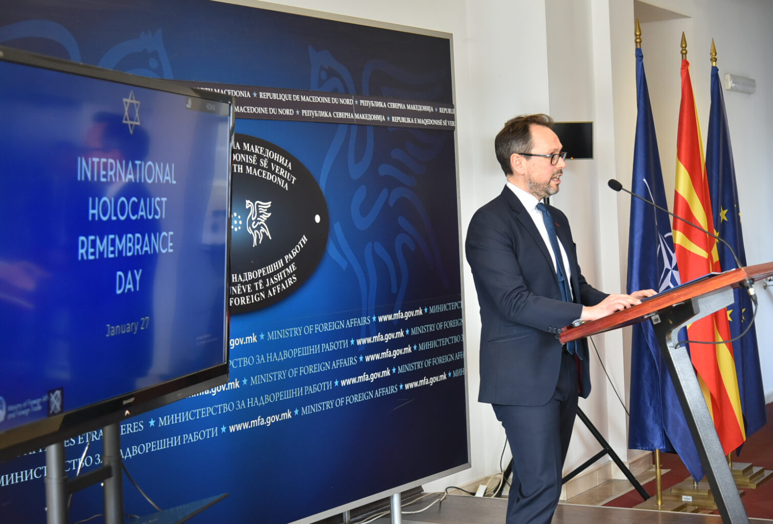 Денес, во фоајето на Министерството за надворешни работи, се одбележа Меѓународниот ден на сеќавање на Холокаустот.