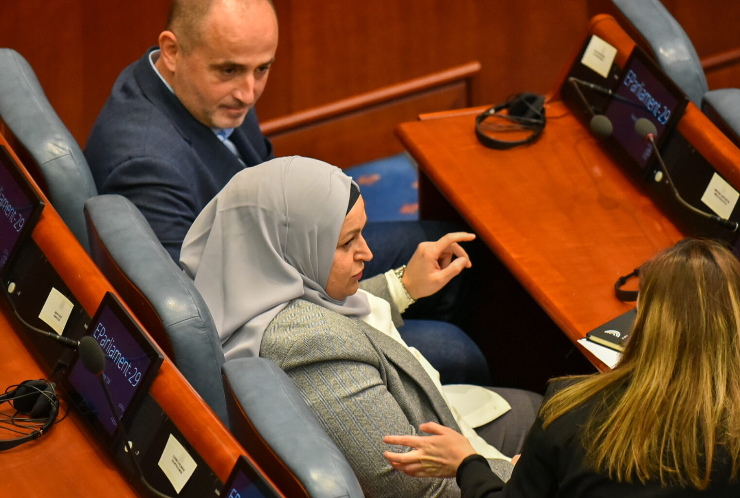 На седницата, која почна да ја води претседателот на Собранието Африм Гаши, пратениците треба да расправаат и за интерпелацијата што во Парламентот ја поднесе пратеничката група на Левица против Илире Даути – пратеничка на Алијанса за Албанците од коалицијата „Европски фронт“ и претседателка на собраниската Комисија за социјална политика, демографија и млади.