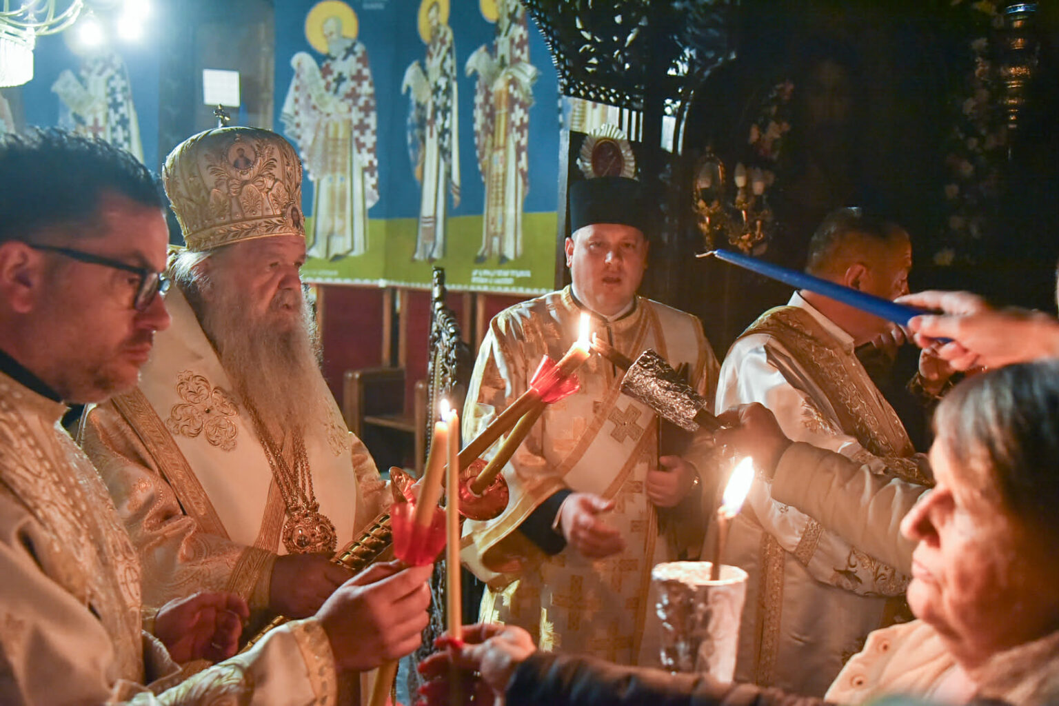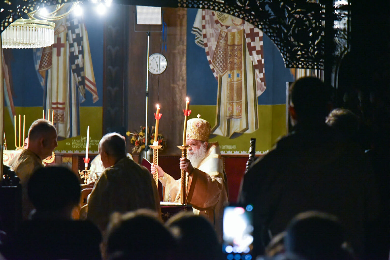 Во Соборниот храм „Свети Климент Охридски“ во Скопје вчеравечер се одржа литургиска прослава на Христовото Воскресение – Велигден, најголемиот и најсветлиот христијански празник. Со литургија чиноначалствуваше Архиепископот Охридски и Македонски г.г. Стефан. На полноќ верниците си честитаа со: Христос воскресна! Навистина воскресна!.
