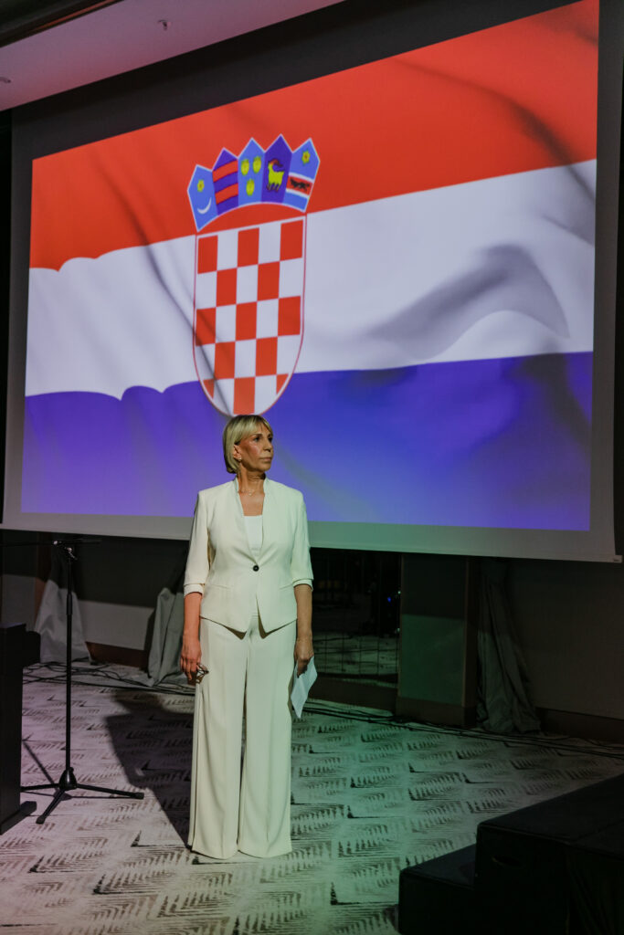 Многубројните гости од јавниот живот, бизнисмени, културни и спортски работници, но и од највисокиот државен врв на Македоноја кои присуствуваа на свечениот настан, по интонирањето на хрватската и на македонската национална химна, ги поздрави амбасадорката Тигањ. Таа го истакна задоволството што ги извршува дипломатските обврски и должности меѓу пријателски луѓе, а се осврна и на историските корени на пријателството меѓу двете земји. Хрватска, која што е членка на Европската Унија, се залагаше и се залага, како што кажа, да ни ги покаже патиштата и институционалните формули за поефикасна интеграција во европското семејство. Амбассдорката Тигањ посака среќа, побрза интеграција како дел од заедничкоито друштво на ЕУ.