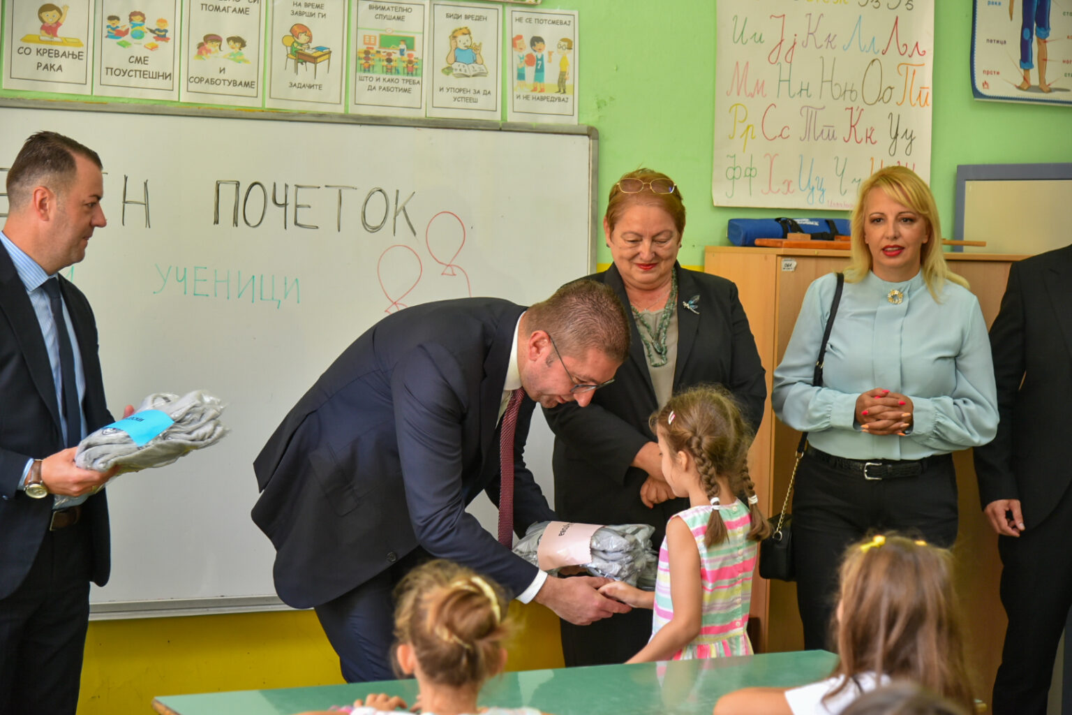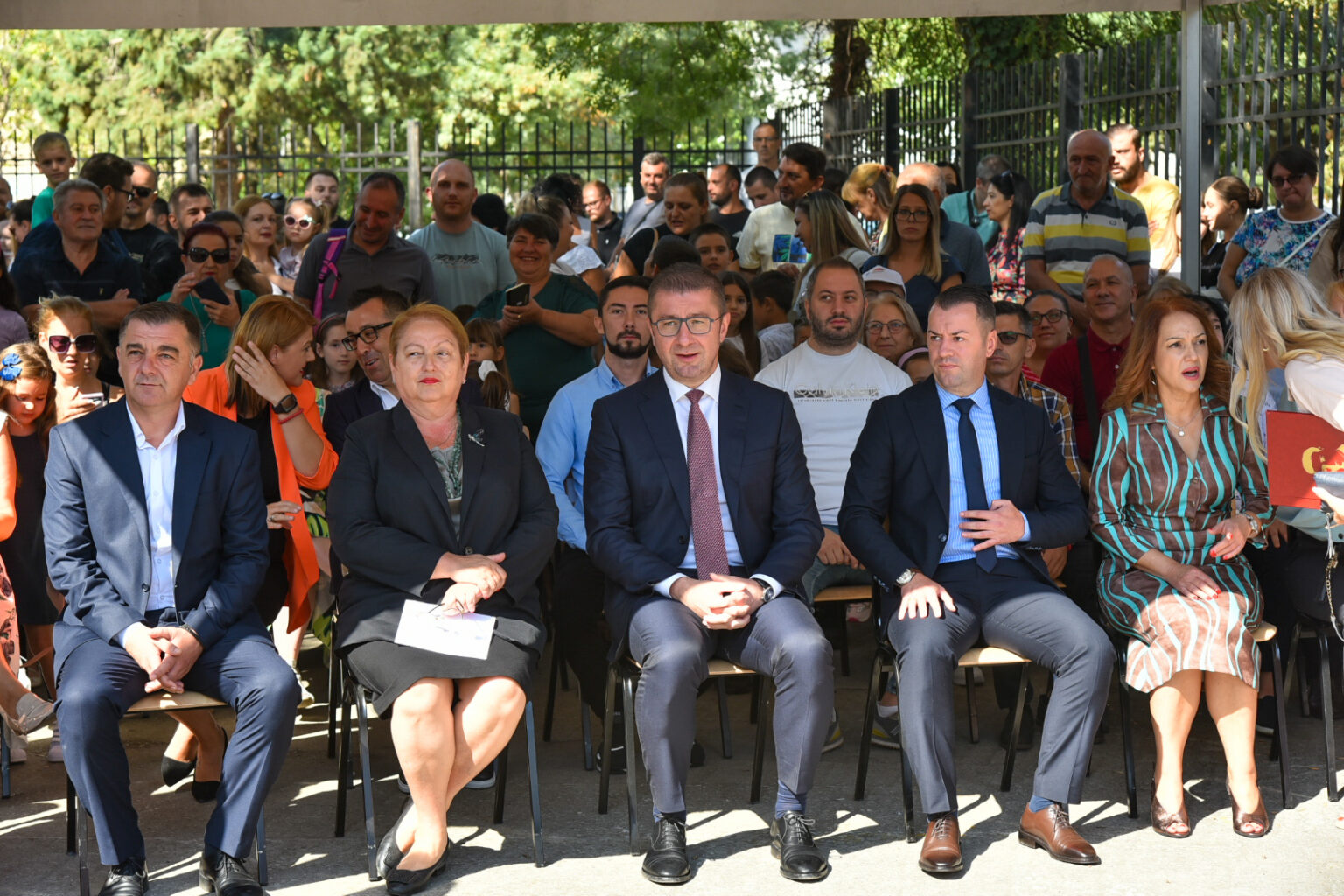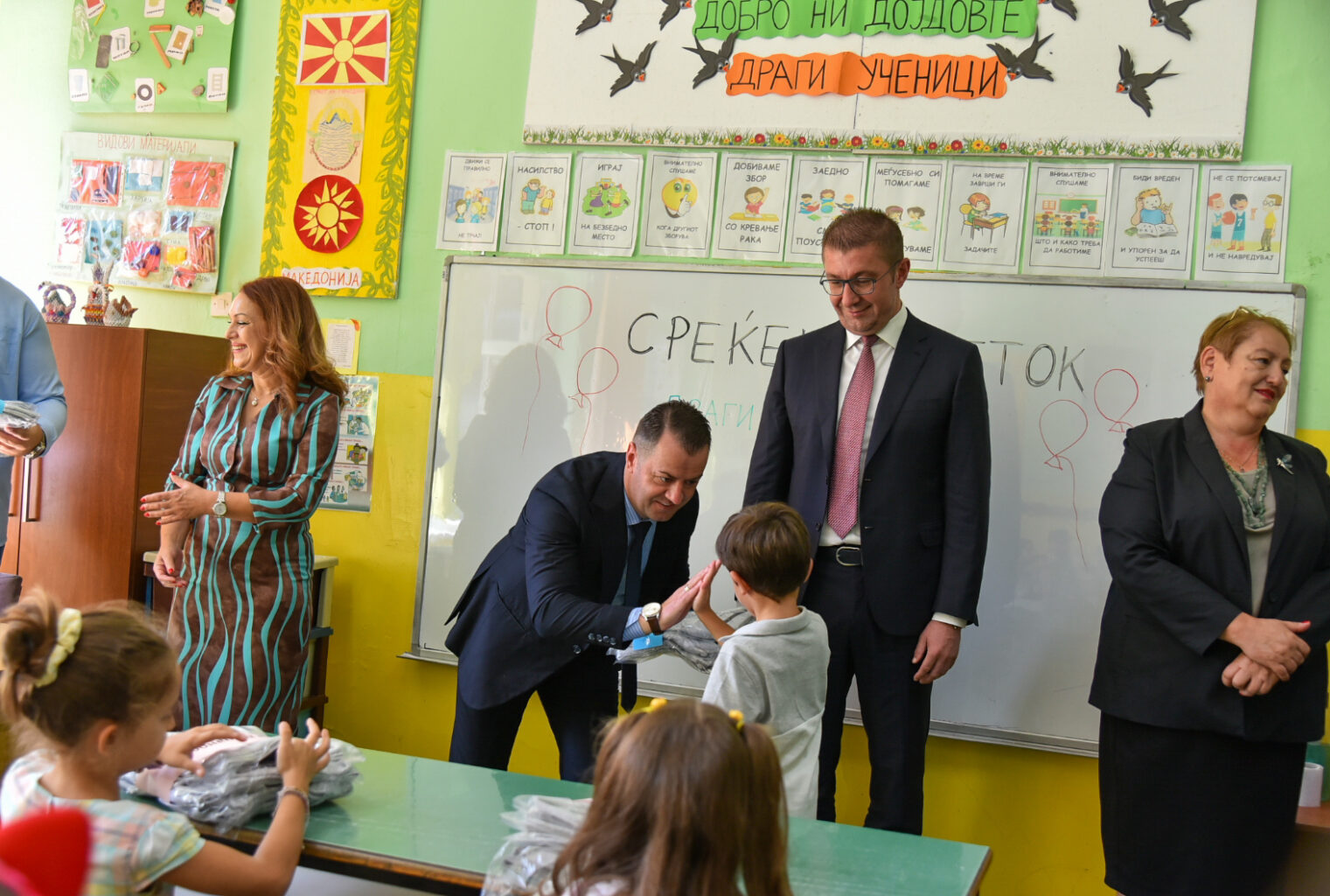 -На мое големо задоволство, оваа енергија која ја чувствувам денека е прекрасна, дечињата се желни за наука и образование, започнуваат да го чекорат својот образовен пат. Возбудени родители, со многу убава позитивна емоција. Нашата порака денеска е да имаат успешен прв учебен час и она што треба да го знаат е дека во животот ништо не доаѓа веднаш и ништо не доаѓа лесно. За се треба многу напор, многу жртви за да дојдеме до целта која што сакаме да ја постигнеме. Од мене јас можам да им посакам многу убави школски денови, многу нови другарчиња и се што сакаат во животот да им се исполни и да работат за да им се исполни, бидејќи тоа е смислата и убавината на животот – вели премиерот Мицкоски.